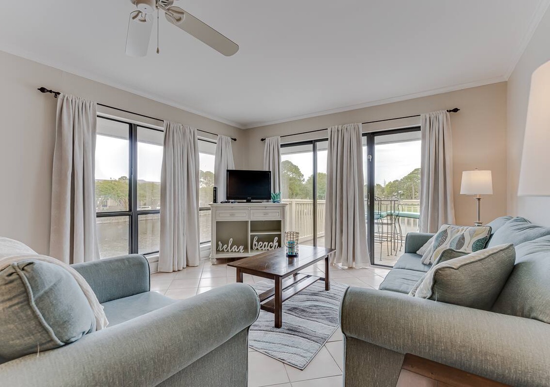 Harbour Point 915 is a beautiful bayfront condo located in Harbour Point at Sandestin Golf and Beach Resort! This 2BR/2BA retreat includes a golf cart and offers stunning bay views, making it perfect for families, couples, or friends looking to experience the best of the Emerald Coast. Just minutes from the beach, you’ll enjoy access to resort-style amenities, dining, shopping, and multiple pools — including a lakefront community pool plus two additional resort pools. This fully furnished condo comfortably sleeps 6 guests with a queen bed in the master bedroom, king bed in the guest bedroom, and a sleeper sofa in the living room. A washer and dryer are also provided for added convenience. Come experience why Harbour Pointe 915 is a guest favorite!