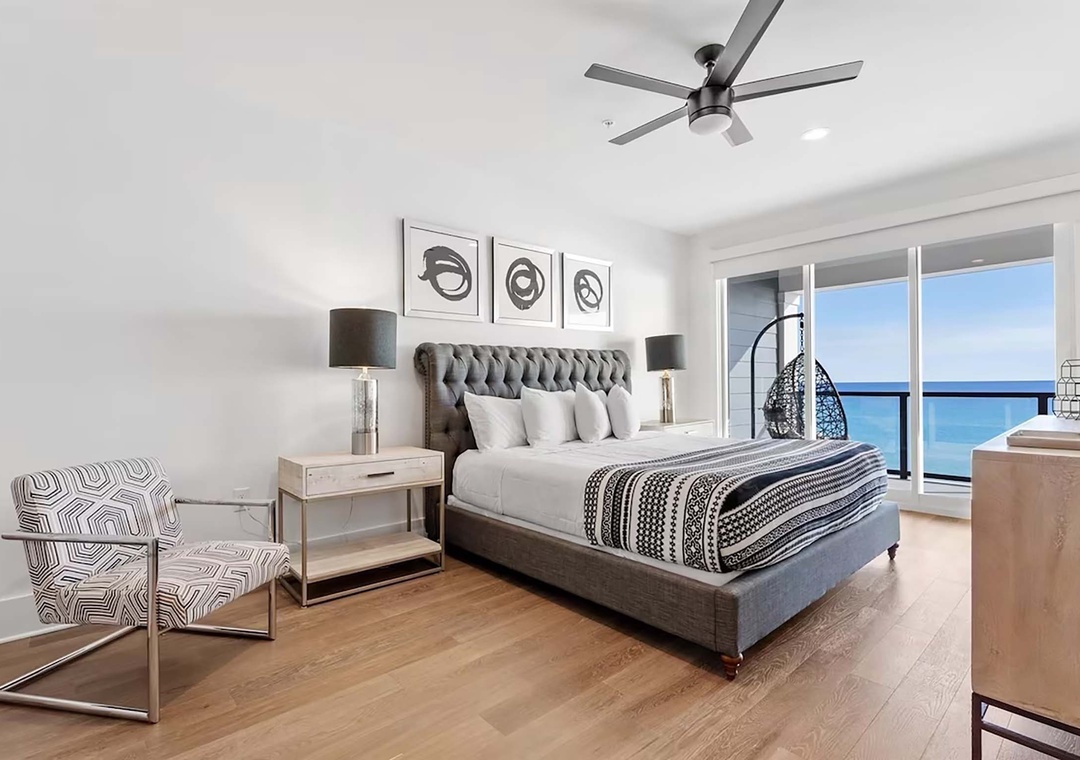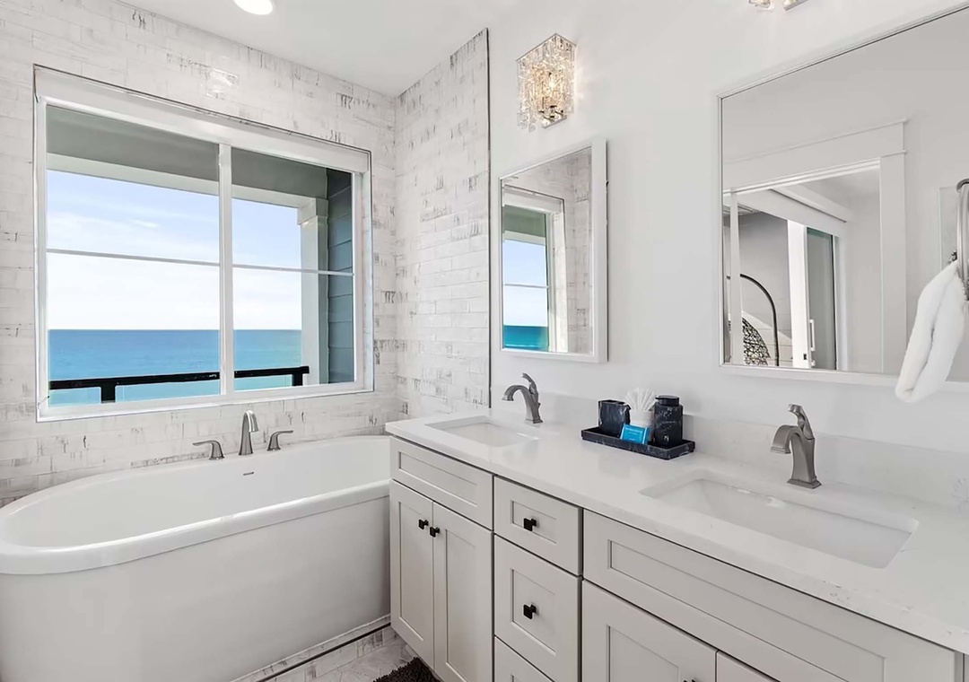 Henderson Beach Villa #4- Six on the beach, boasts four floors of sophisticated coastal living. This 6-bedroom, 5.5-bathroom Villa sleeps 13 and features balconies and unparalleled views of the Gulf of Mexico from every floor. The first floor greets you with a lavish kitchen and beautiful living room. The kitchen boasts quartz countertops, with a waterfall modern design, custom white shaker cabinets, and stainless-steel appliances. Each floor offers extravagant ceiling-to-floor panel sliding doors for indoor/outdoor living. The open floor plan creates a spacious environment perfect for entertaining. After a day at the beach or enjoying your private rooftop pool, you can enjoy a relaxing evening with friends and family in your own Movie Theater. Each floor offers spacious bedrooms with gorgeous décor and magnificent design throughout. You will also find the first bedroom on this floor; a queen suite complete with a flat screen tv, private bathroom, and spacious closet. The second floor welcomes you with two more bedrooms. A king suite with private balcony access will drift you into tranquility. A spa-like bathroom complete with dual sinks, a luxurious shower, and a free-standing soaking tub that overlooks the Gulf is also found in this king suite. Another king suite with a private bathroom and a large walk-in closet completes the second floor. The third floor has its very own in-home movie theater room and the remaining two bedrooms. The theater room on this floor offers raised seating, a large projection screen with surround sound, and an arcade-style gaming system. Indulge in relaxation from the master bedroom. Welcoming you with an ensuite bathroom and private balcony access that leads you to the rooftop pool, you will never want to leave the master bedroom! The final room is complete with a king bed and a large walk-in closet. Make this your vacation of a lifetime at Henderson Beach Villa #4 with lasting memories!