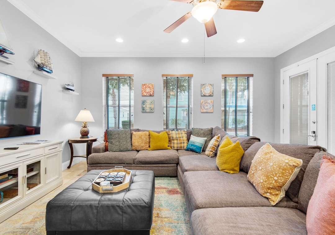 Villages of Crystal Beach is an exclusive, gated community only a few blocks from the beautiful blue waters and white sandy beaches of Destin. You can make the walk on foot or hop on the free seasonal trolley service (Memorial Day through Labor Day): they will even pick you up at the house and drop you off right at the beach! The pool area at Villages of Crystal Beach is a vacation must! The lagoon-style zero-entry pool is 30,000 square feet of gorgeous, sparkling clear water. There is a spa, tropical landscaping, and plenty of seating areas. It also has surround sound and a flat-screen TV to help you relax and unwind.