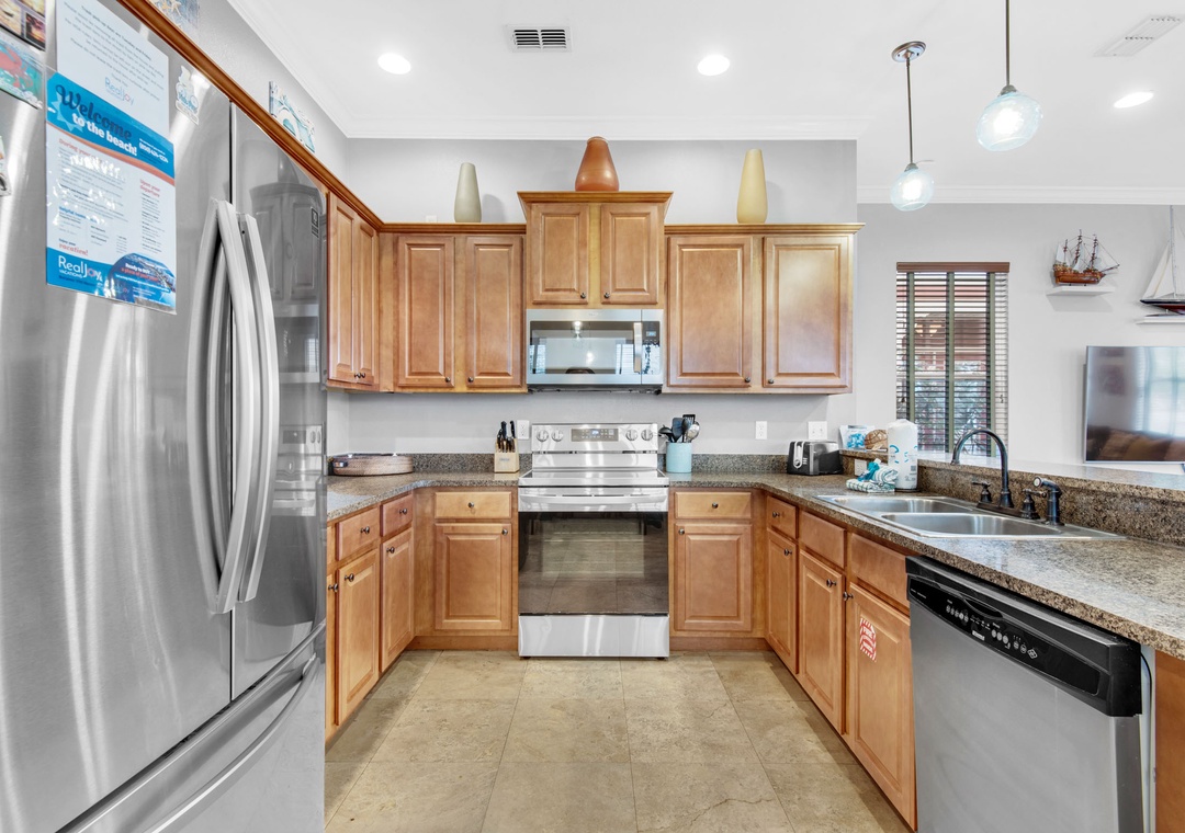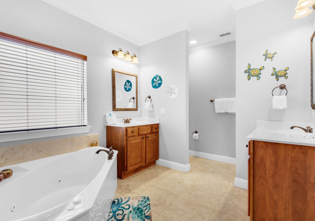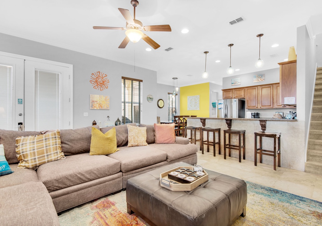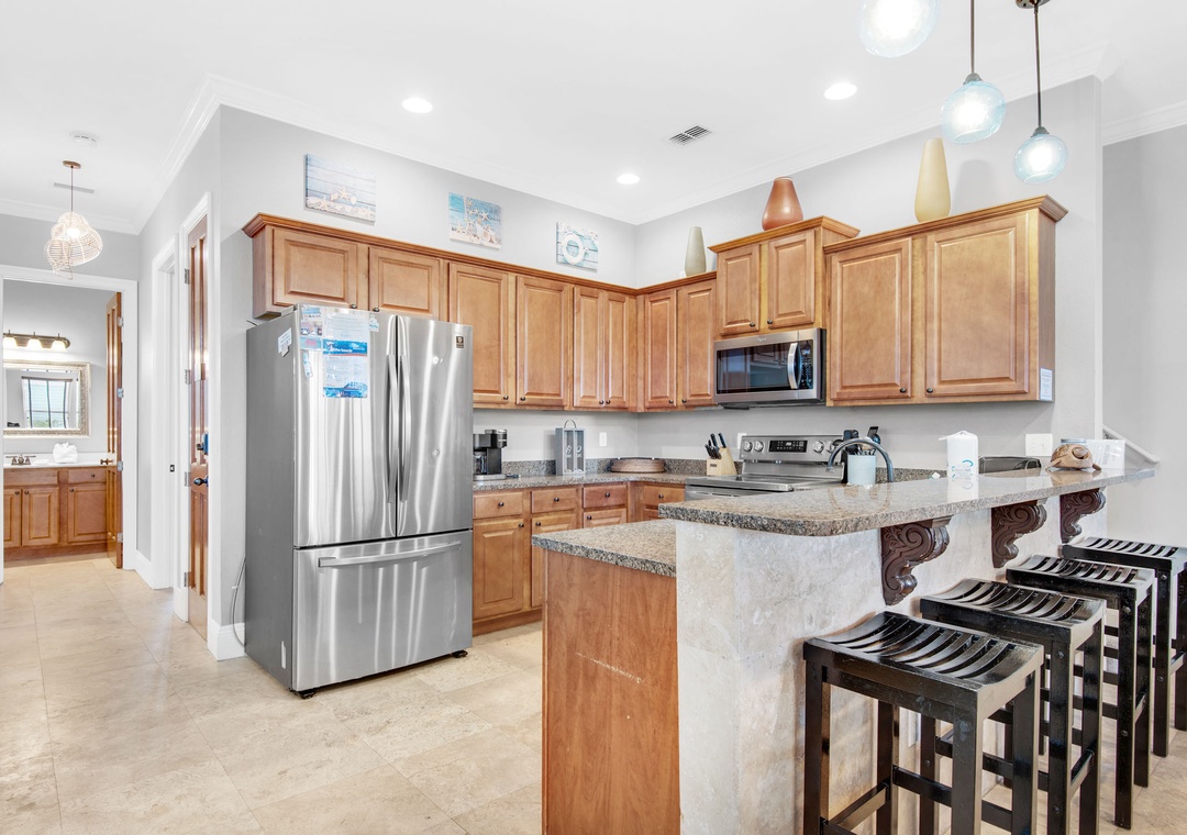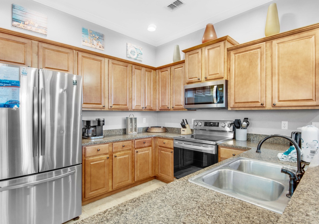 Step into Here Comes the Sun, nestled in the delightful Villages of Crystal Beach. This expansive three-story residence provides ample space, making it ideal for multiple families. Featuring five bedrooms and four bathrooms, it effortlessly caters to larger groups. Revel in the breathtaking views from two balconies, and discover kitchenettes on both the second and third levels. The master suite, situated on the second floor, boasts a private balcony, an ensuite bathroom with a garden tub and stand-up shower, a wet bar and a king bed. Additionally, the second floor hosts a queen guest room. The first floor accommodates a queen guest room, while the third floor welcomes a king guest room and 2 twin-over-twin bunk beds. For added convenience, a living room loft on the third floor offers a sitting area and a kitchenette. This residence comfortably houses 12 guests. Come and craft cherished memories at Here Comes the Sun, where comfort, luxury, and an unforgettable beach vacation await you.