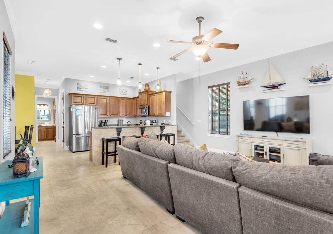 Stayed with 2 families (4 parents, 4 kids) & a grandparent. First floor bedroom was great for grandparent, second floor for parents, and third floor for kids - it's a LOT of steps! Plenty of space for everyone. Really well furnished kitchen with everything we needed to cook meals. Super easy 0.5mi walk to the beach. Only watch outs (none of which would stop us from returning): There are NO beach/pool towels - bring your own (glad we asked ahead of time!), there are minimal pillows (like 2 on a king bed) - so bring extras if you need, the one hottub is TINY in comparison to the number of houses who use it and many times there wasn't space to get in it, and the pool "security" is SERIOUS - no balls, food/drink, inflatables for kids over 12, etc. Overall, a GREAT stay and would return. Super responsive hosts!- Reviewed On: 3/29/2024