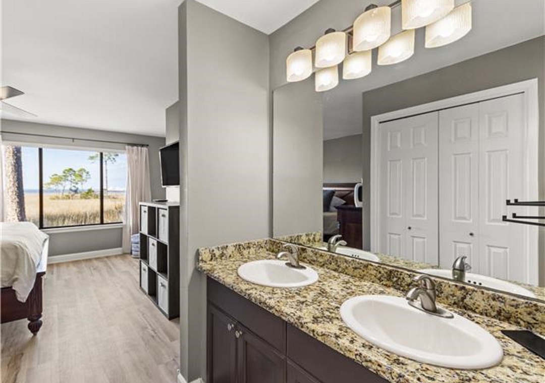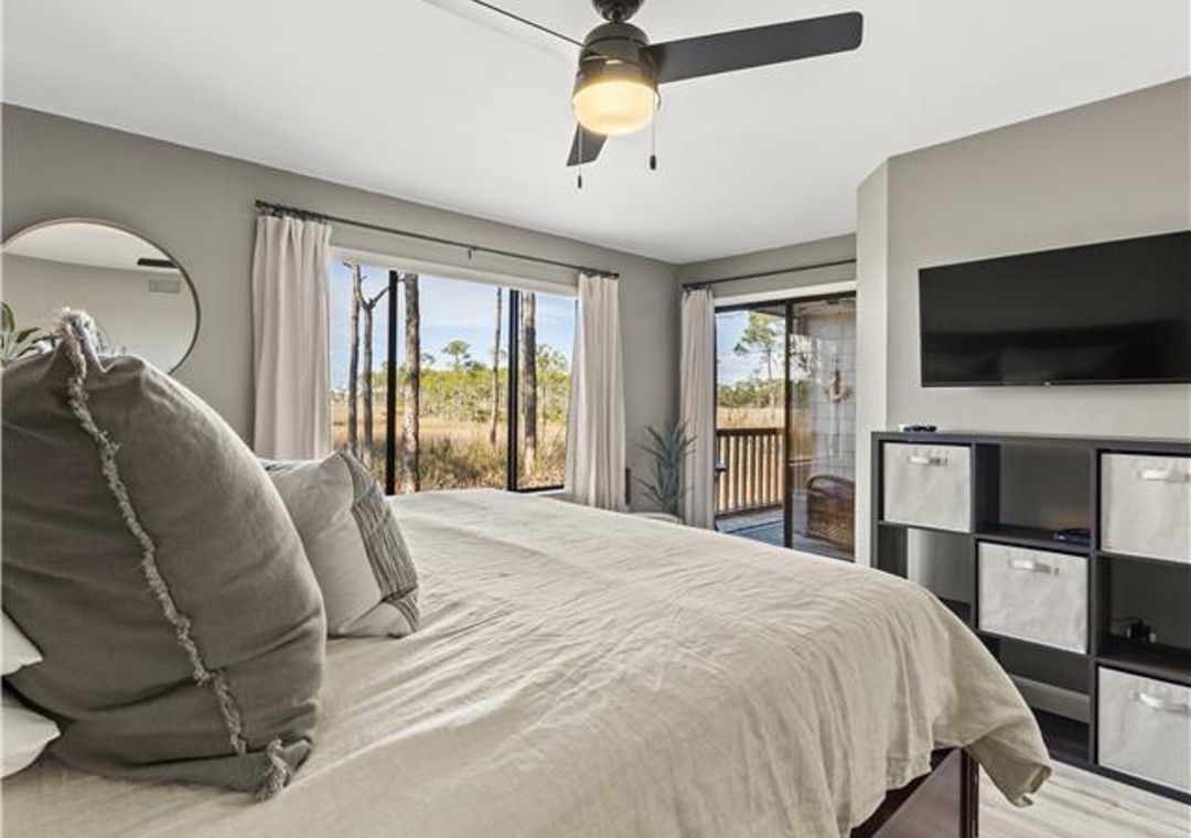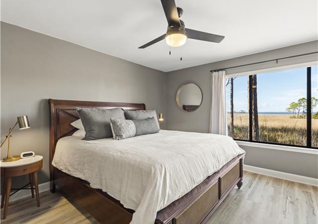 Heron’s Haven is an elegantly decorated coastal condo located on the bayside of Sandestin Golf and Beach Resort. This newly remodeled, ground-floor 2-bedroom retreat features a screened porch with expansive views of the bay, Jolee Island, and the Sandestin Marina. Thoughtfully updated throughout, this 2BR/2BA condo offers a relaxing atmosphere with stunning views of Horseshoe Bayou and Baytowne Marina — all enjoyed from the comfort of your private screened porch. Hop on the included golf cart and ride through the resort tunnel to reach the beach in under 5 minutes. Spend your days soaking up the Florida sunshine on the sugar-white sand beaches and emerald waters of the Gulf. Prefer the bayside vibe? Enjoy live music, waterfront dining, marina views, and sunset cocktails along Choctawhatchee Bay. Guests also have access to two community pools — perfect for a refreshing swim after a day of exploring. The master bedroom features a king bed, wall-mounted TV, ensuite bathroom, and serene marsh views. The guest bedroom offers a queen bed and access to a shared full bathroom, comfortably accommodating couples or small families. Come experience the best of both beach and bay at Heron’s Haven.