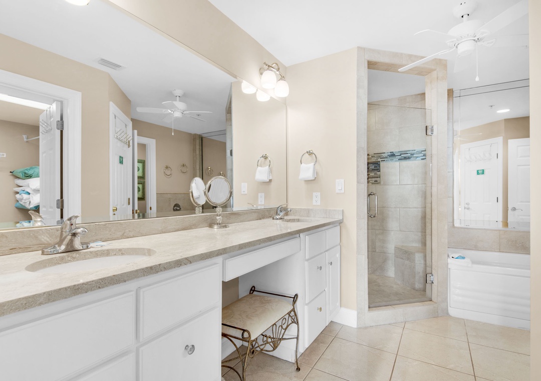 Experience unforgettable moments at Hidden Dunes 1305! This expansive 3-bedroom, 3-bathroom unit offers over 2300 square feet of living space. Located on the 13th floor, this unit boasts breathtaking floor-to-ceiling views of the Gulf of Mexico. The master bedroom features a king bed and a spacious walk-in closet. Indulge in relaxation with a jetted tub and a tile stand-up shower in the master bath. Each guest room is furnished with two queen beds, accommodating 10 guests comfortably.