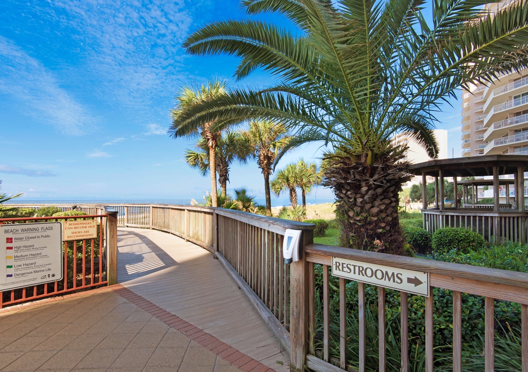 Take the kids over to Shipwreck Island waterpark for more splashing fun or take a pleasant stroll about a mile down the beach to Schooner's for a delicious meal or drink.
