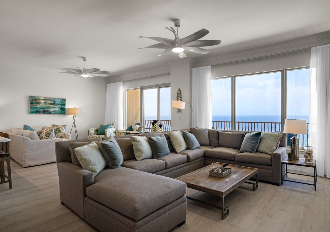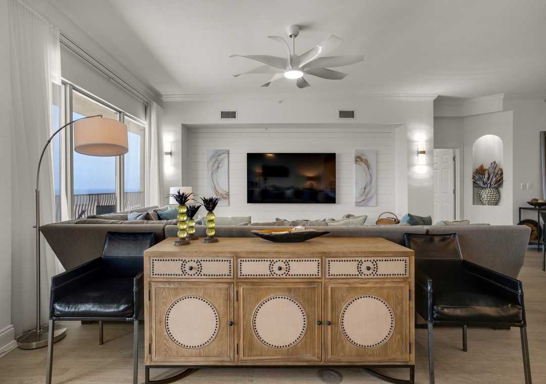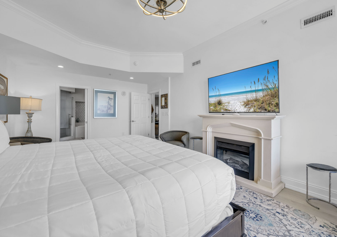 Find beachfront luxury at Hidden Dunes 1802. This spacious 3-bed, 3-bath modern condo features over 2300 sq ft of living space. Take in spectacular, floor-to-ceiling views of the Gulf of Mexico from the 18th floor from 2 different seating areas. An XL balcony provides plenty of seating. Unwind in the master bedroom that offers a king bed, cozy fireplace, and balcony access. The spacious master bathroom is complete with a double vanity, soaking tub, and walk-in shower. Guests will feel at home in the additional bedrooms. The first guest room features a king bed, and the second guest room features two queen beds, to sleep up to 8 guests comfortably. The chef in the group will love the incredible kitchen, preparing delicious meals for all to enjoy. It boasts stainless steel appliances and a range hood, granite countertops, and incredible Gulf views. Gather around the dining table for a delectable meal or memorable game night. After a long day on the beach, relax in one of two sitting areas. One featuring a couch and two armchairs, perfect for conversing or reading a good book. The other offers a large sectional with an 85” TV, perfect for enjoying your favorite movie or football game. Come see why Hidden Dunes 1802 will have you returning every year.