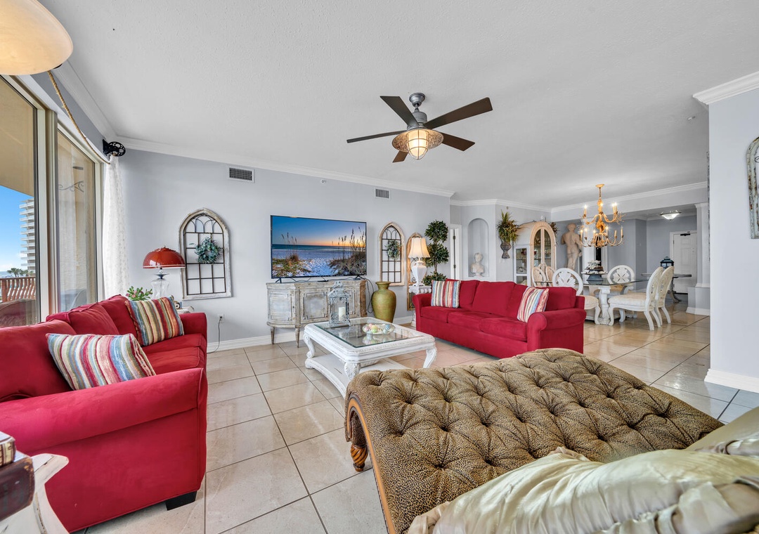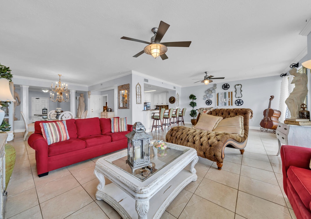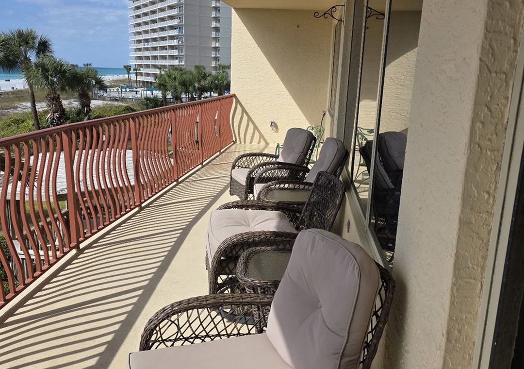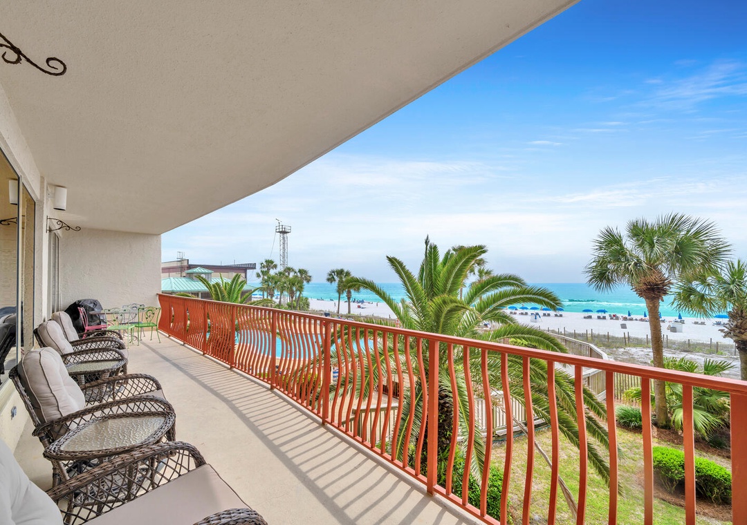 Welcome to your home away from home at Hidden Dunes 203! This spacious 3-bed, 3-bath unit has spectacular, floor-to-ceiling views of the Gulf of Mexico from the 2nd-floor balcony. The master bedroom has a king bed and balcony access. Attached to the master bedroom is a huge, beautiful bathroom with a chandelier over the jetted tub. Guest bedroom 1 has a queen bed, guest bedroom 2 has 2 full beds, and the living room has 2 full sleeper sofas. This unit has enough room for 11 people to sleep in comfort. The stocked kitchen is perfect for all the chefs in your family. For your convenience, we have a washer, dryer, wine cooler, 2 refrigerators, an electric grill, and an old-timey Coke machine for you and your guests to enjoy. The massive balcony is a must-see! This balcony has enough room for everyone to watch the waves crash against the white sand. Come and see why the fun never stops at Hidden Dunes 203!
