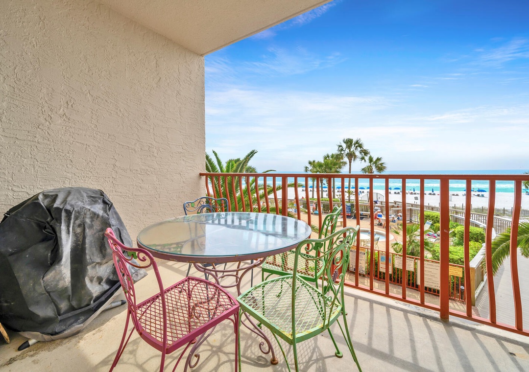 Welcome to your home away from home at Hidden Dunes 203! This spacious 3 bed, 3 bath unit has spectacular, floor-to-ceiling views of the Gulf of Mexico from the 2nd floor balcony. The master bedroom has a king bed and balcony access. Attached to the master bedroom is a huge, beautiful bathroom with a chandelier over the jetted tub. Guest bedroom 1 has a queen bed, guest bedroom 2 has 2 full beds and the living room has 2 full sleeper sofas. This unit has enough room for 11 people to sleep in comfort. The stocked kitchen is perfect for all the chefs in your family. For your convivence, we have a washer, dryer, wine cooler, 2 refrigerators, an electric grill, and an old-timey coke machine for you and your guest to enjoy. The massive balcony is a must-see! This balcony has enough room for everyone to watch the waves crash against the white sand. Come and see why the fun never stops at Hidden Dunes 203!