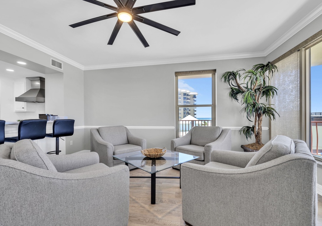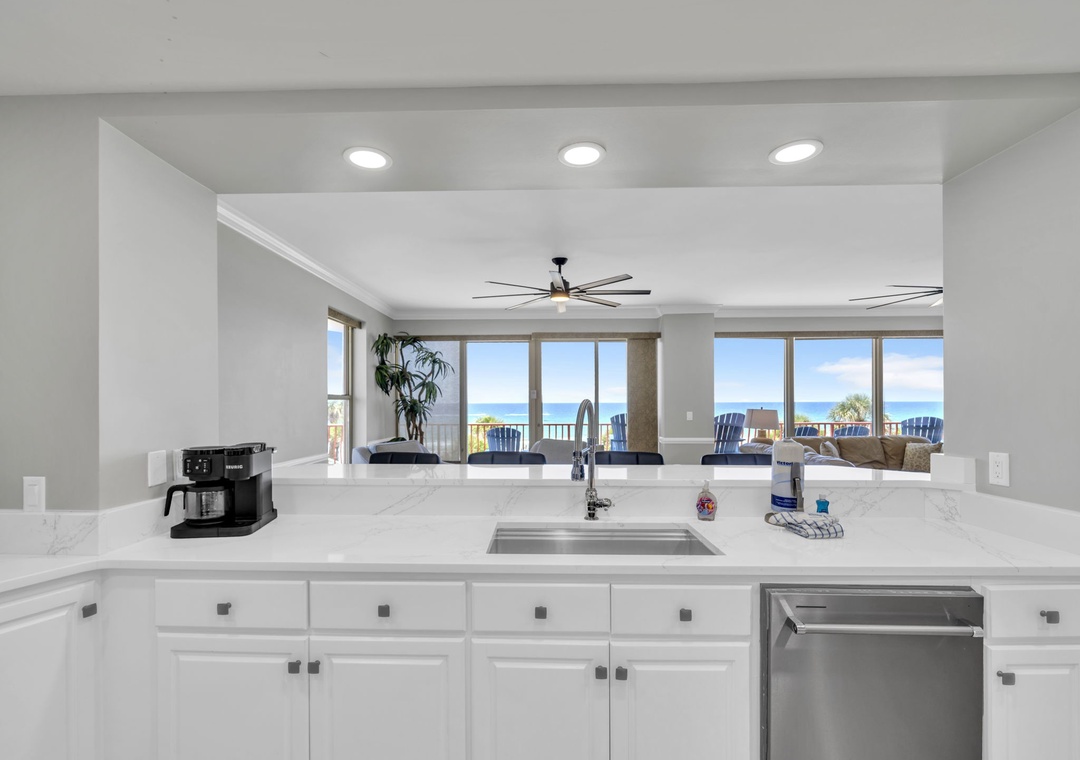 We had the absolute best stay at Hidden Dunes 305! The condo was immaculate & spacious, accommodating 9 of us comfortably. All appliances seem new, and there is a beer/wine fridge and large ice maker. The dining table easily fit all of us, as did the living room. The kitchen is huge and had everything we needed to make meals. The balcony is massive with 10 chairs and several tables, and amazing views of the pool and beach. The front door area had plenty of space to air out all of our beach chairs and wagons every night. Both elevators were fully functioning all week, and the pool & common areas are well kept. Bonus: jet ski rental guys are right at the bottom of the beach entrance! We will definitely be back!!- Reviewed On: 8/4/2025