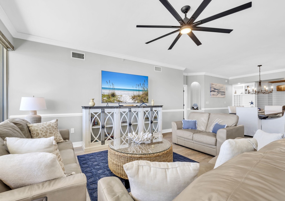 Welcome to Hidden Dunes 305! This 3-bed, 3-bath unit has over 2300 sq ft of spectacular living space. The master bedroom has a king-size bed and a large walk-in closet. In each of the guest rooms, you will find 2 queen-size beds. This unit has enough room for 8 people to sleep comfortably. The stocked kitchen is perfect for all the chefs in your family. Enjoy a meal and family time around the formal dining room and the extra seating at the eat-in bar. The massive balcony is a must-see! This balcony has enough seating for everyone to watch the waves crash against the white sand. Come see for yourself the luxurious Hidden Dunes 305!