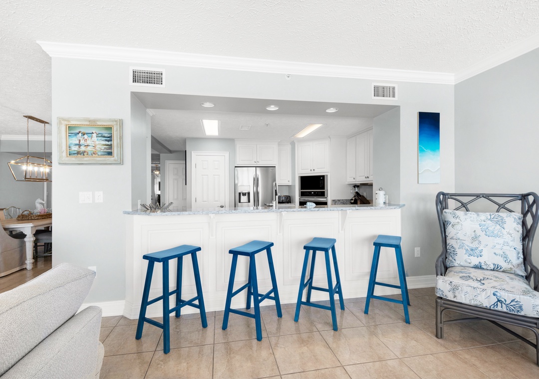 This was our first time staying in PCB. We drove up the coast, from a hs senior trip in Treasure Island, to squeeze in family time before heading back to WI. Given it was spring break we were happy to see this unit was in the "family" area of PCB. The beach was filled with families and not over crowded at all. The chairs & umbrellas that came with the unit were perfect to protect our WI skin from burning anymore;) The unit itself had the most beautiful views! Sunsets were breathtaking. The condo is very spacious, yet homey and comfortable. We only stayed for a few nights, wishing we arrived sooner. Kitchen had all that you need. I'd suggest offering more than 1 dish towel and dish rag. The dish towel is thin and gets wet after a couple uses. Having a supply of 2-3 in the drawers would be helpful. Also extra linens, so we could have used the extra pillows in the closet. All and all this unit is beyond beautiful! We had a great time and hope to visit again!- Reviewed On: 3/31/2024
