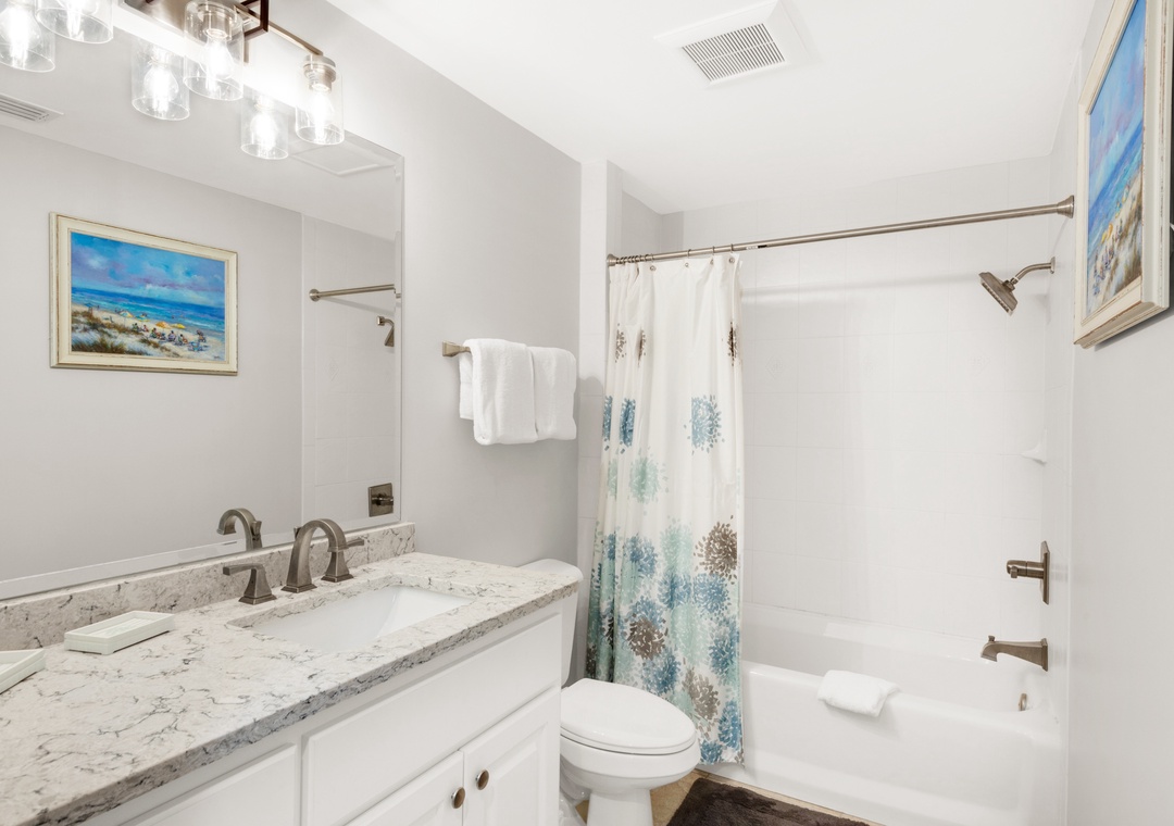 The condo was big, clean, in a beautiful and quiet location and was all around comfortable. The evening sunset views were breathtaking, and the deck/patio is huge with plenty of seating for our group of 7 adults. The beds were great in all of the bedrooms with lots of extra pillows and extra beddings. The closet in the main bedroom was AMAZING as was the shower. The counter height in the main bedroom was very tall and I struggled to use the sink comfortably (for reference I'm 5'3"); not a problem just thought it might be helpful for future guests who are also vertically challenged. Bathrooms were clean and there was plenty of towels in each! The kitchen was well equipped and even had crock-pots which was great. There was only 1 hand towel and 1 small dish towel though so we had to to use bathroom towels in the kitchen but it worked out ok. A sponge or something to wash dishes would have been great! Also there were no potholders, and only 1 spatula/flipper that was a big metal one for a grill - not the end of the world and we made it work but it would have been nice to have to use in the kitchen. Parking was easy, elevators were speedy fast, the pool was fantastic and the walkway to the beach was clean and short. Having 4 beach chairs included in the rental was awesome and so appreciated. We had brought some games from home but it was fun to find some already there so we had a nice variety! Overall fantastic trip and we would definitely consider this unit again!- Reviewed On: 3/31/2023