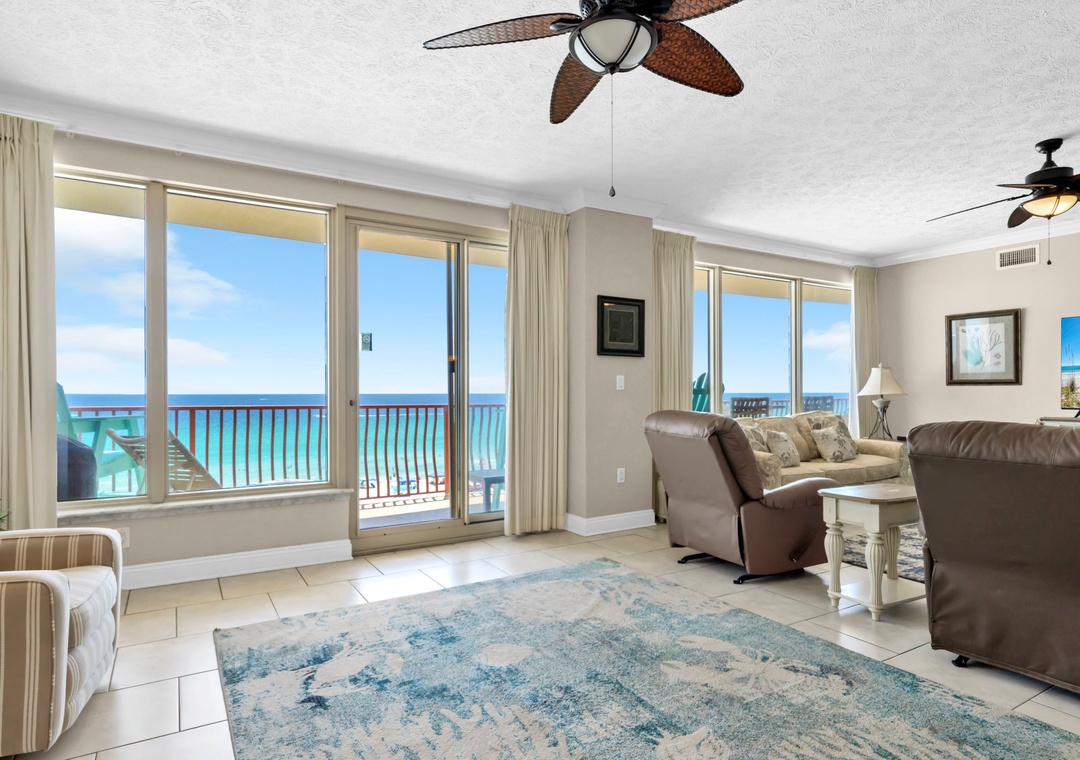 We came down for a quick last minute stay. Wow! This unit really wonderful place to call home for a few days. Clean! There is plenty of room for large groups: lots of seating, three full bathrooms. And the view of the Gulf is outstanding, especially while sitting in the private hot tub on the balcony. We didn’t check out all of the building amenities (pool, fitness center), only because we didn’t have time. However, the amenities in the unit were excellent (washer/dryer, hot tub, etc.) Also, the parking deck is more convenient than other places we’ve rented before in PCB. We would definitely stay again in the future.- Reviewed On: 8/17/2021