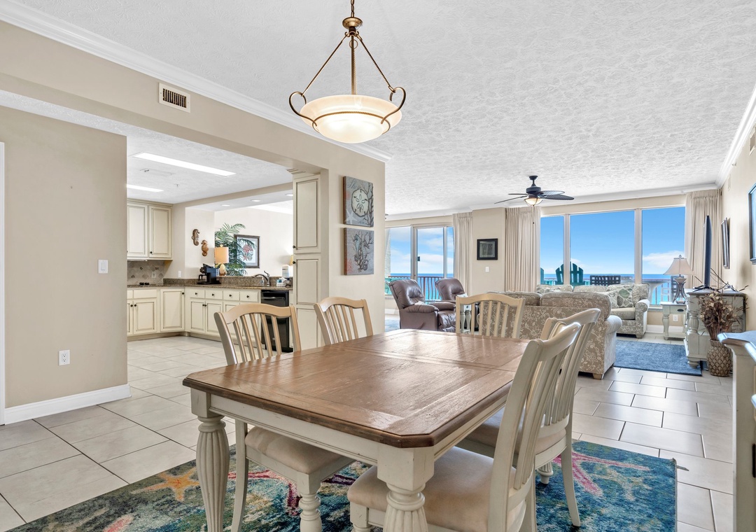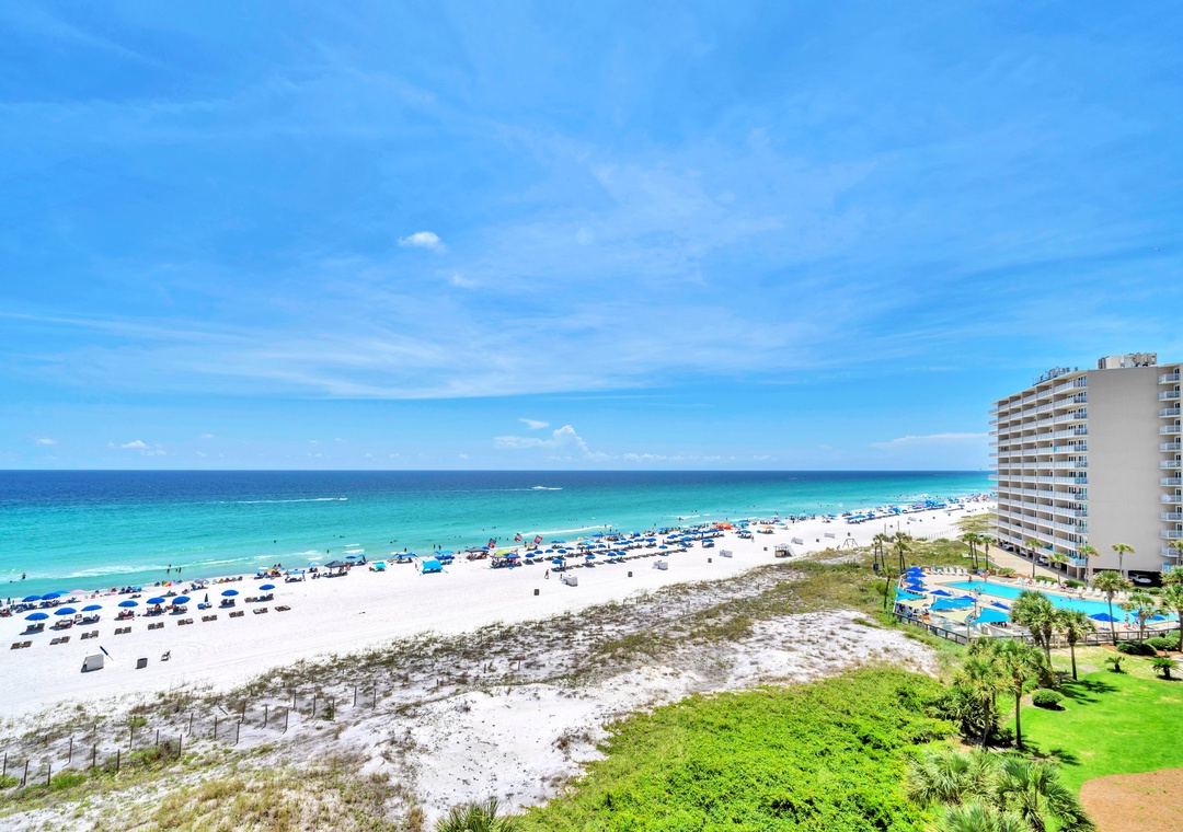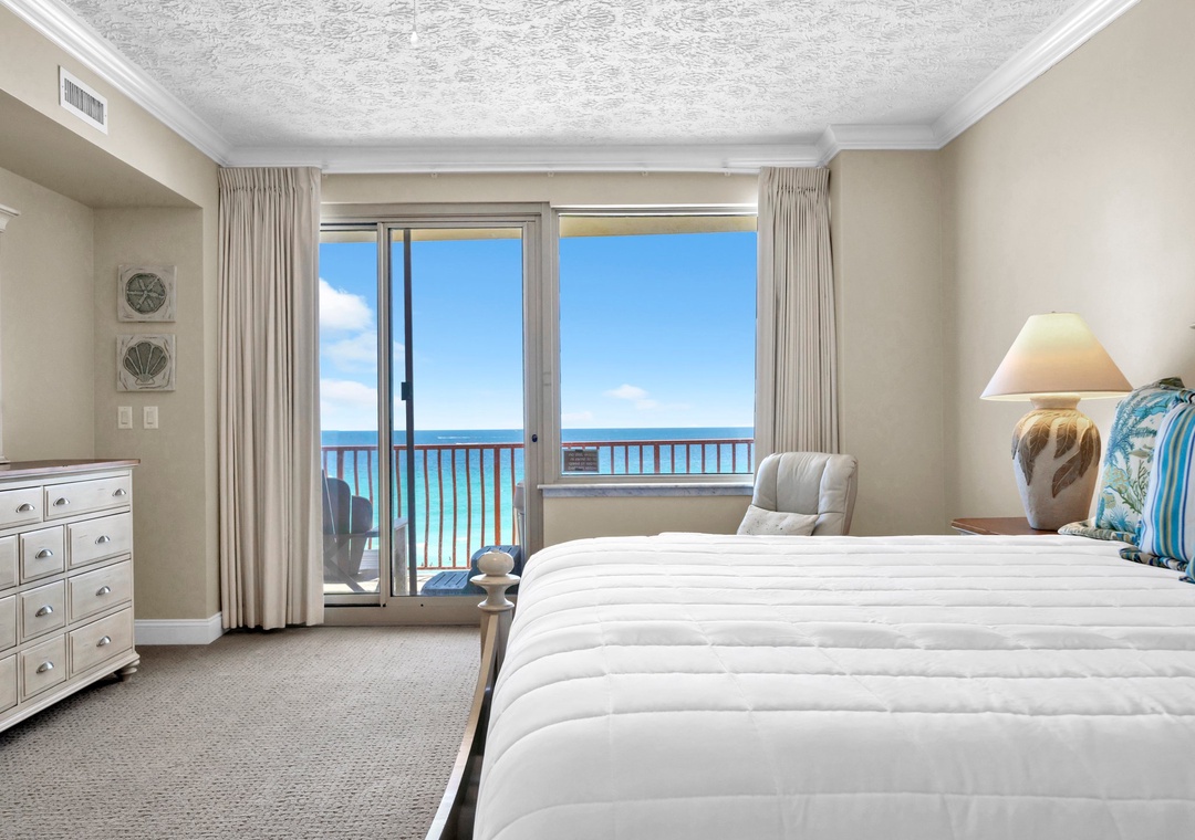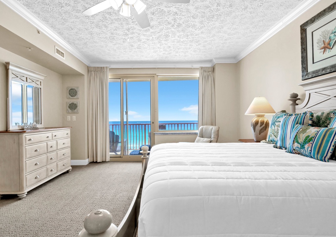 Welcome to Hidden Dunes 602! These 3 beds, 3-bath unit has over 2300 sq ft of spectacular living space. The master bedroom has a king-size bed and a large walk-in closet. Relax in the master bath's jetted tub or the tile stand-up shower. In the first guest room, you will find a king-size bed, and in the second guest room, there are two double-size beds. There is also a sleeper sofa in the living room. This unit has enough room for 10 people to sleep comfortably. The stocked kitchen is perfect for all the chefs in your family. This unit has a Keurig and a regular coffee pot for coffee drinkers. Enjoy a meal and family time around the formal dining room and the extra seating at the eat-in bar. The massive balcony is a must-see! This balcony has enough seating for everyone to watch the waves crash against the white sand or hang out in the private hot tub. Come see for yourself the luxurious Hidden Dunes 602!