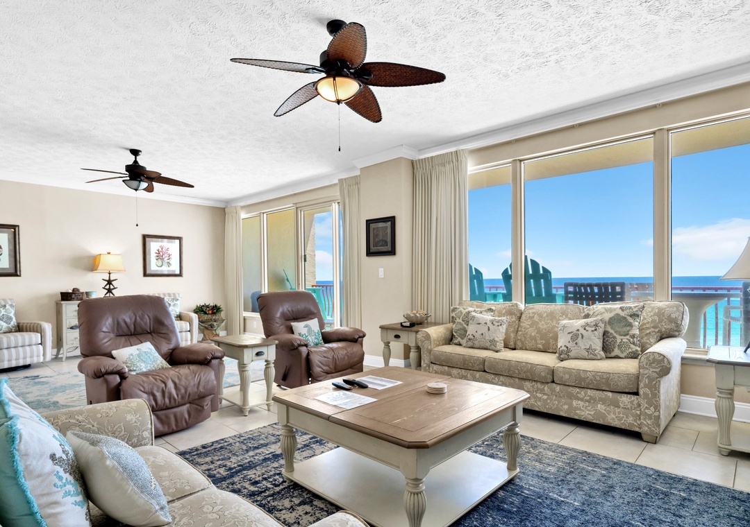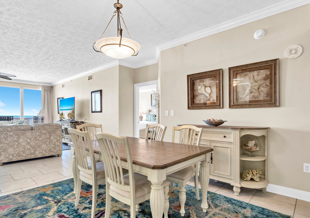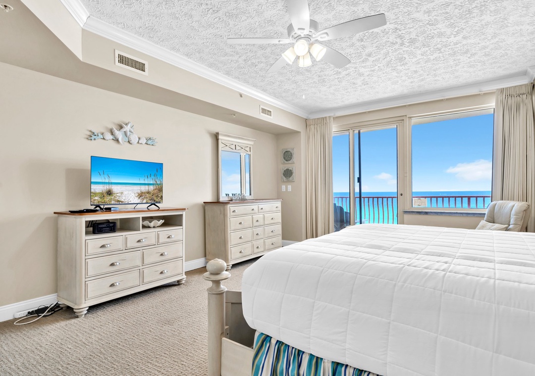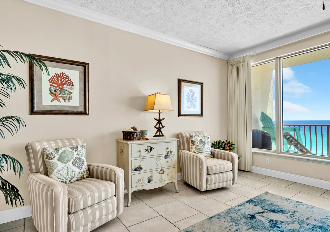 Welcome to Hidden Dunes 602! These 3 beds, 3-bath unit has over 2300 sq ft of spectacular living space. The master bedroom has a king-size bed and a large walk-in closet. Relax in the master bath's jetted tub or the tile stand-up shower. In the first guest room, you will find a king-size bed, and in the second guest room, there are two double-size beds. There is also a sleeper sofa in the living room. This unit has enough room for 10 people to sleep comfortably. The stocked kitchen is perfect for all the chefs in your family. This unit has a Keurig and a regular coffee pot for coffee drinkers. Enjoy a meal and family time around the formal dining room and the extra seating at the eat-in bar. The massive balcony is a must-see! This balcony has enough seating for everyone to watch the waves crash against the white sand or hang out in the private hot tub. Come see for yourself the luxurious Hidden Dunes 602!