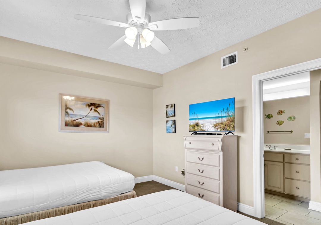 Check in was seamless. Unit was clean and stocked with the basics. Plenty of room for gathering. Each bedroom has a private bath. Great location for shopping, activities, restaurants, and, of course, enjoying the beach! This unit has a portable dehumidifier, which makes a world of difference in temp regulation inside the unit. Loved our stay. Hated to have to go, but we’ll definitely look for this unit’s availability the next time we visit Panama City!- Reviewed On: 8/16/2022