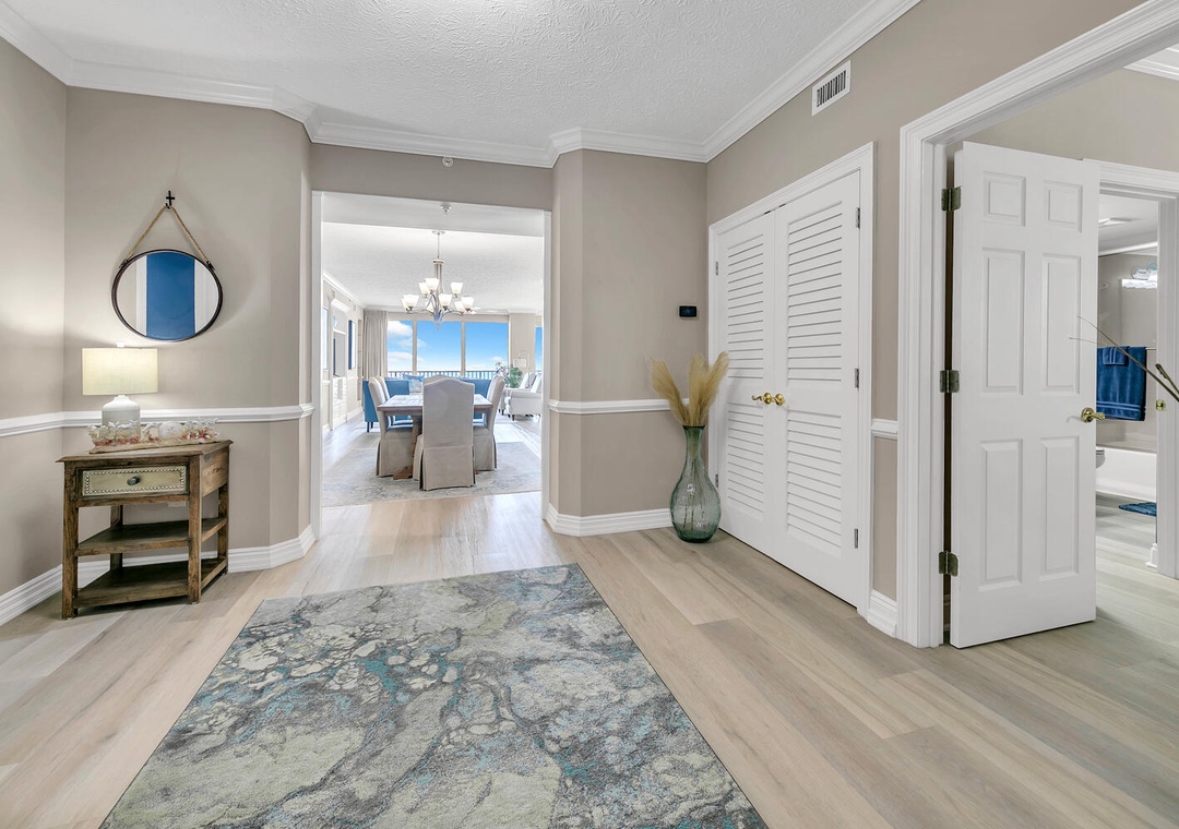 Thank you so much for sharing your 5 star review of our Luxury Hidden Dunes 801 condo in Panama City Beach, Florida. We are thrilled to hear that you enjoyed your stay and all the spacious room this amazing condo has with the 3 bedrooms and 3 full baths. We are happy to hear that you enjoyed the welcome basket and hope that you will stay with us again in the future.Real Joy staff