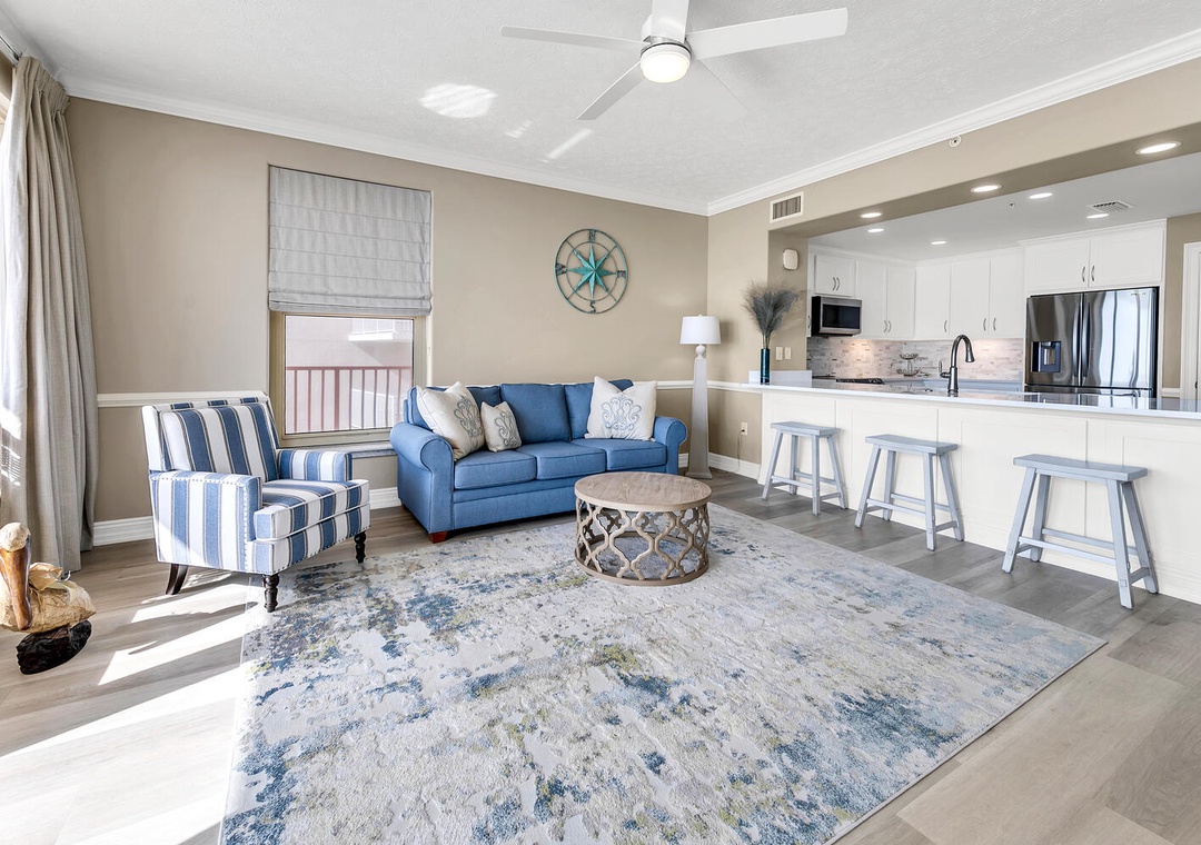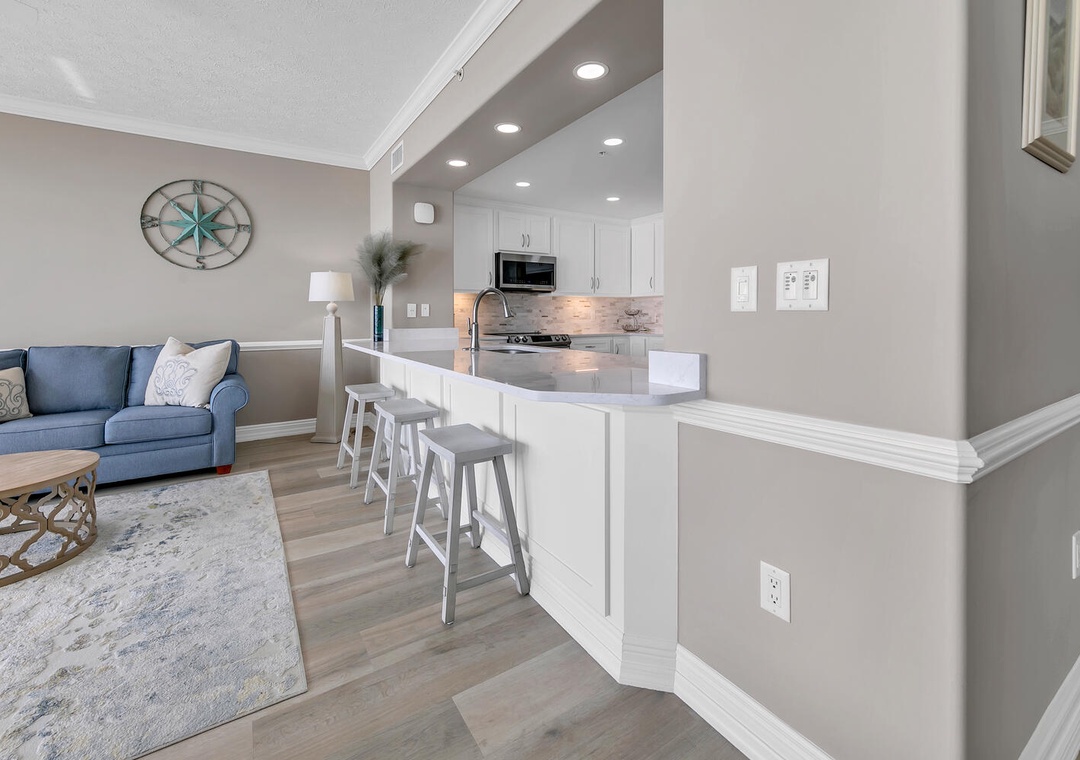 Wow! This was an incredible unit with a very upscale feeling. The photos were very accurate but didn’t quite communicate the spaciousness of the place. We had a family of 7 adults and not once did we feel like we were in each other’s way. Every room was spotless and we felt right at home. The host graciously provided a welcome basket with some bottles of water, snack bags and even coffee pods for the Keurig, as well as some stuff to get started in the kitchen.
