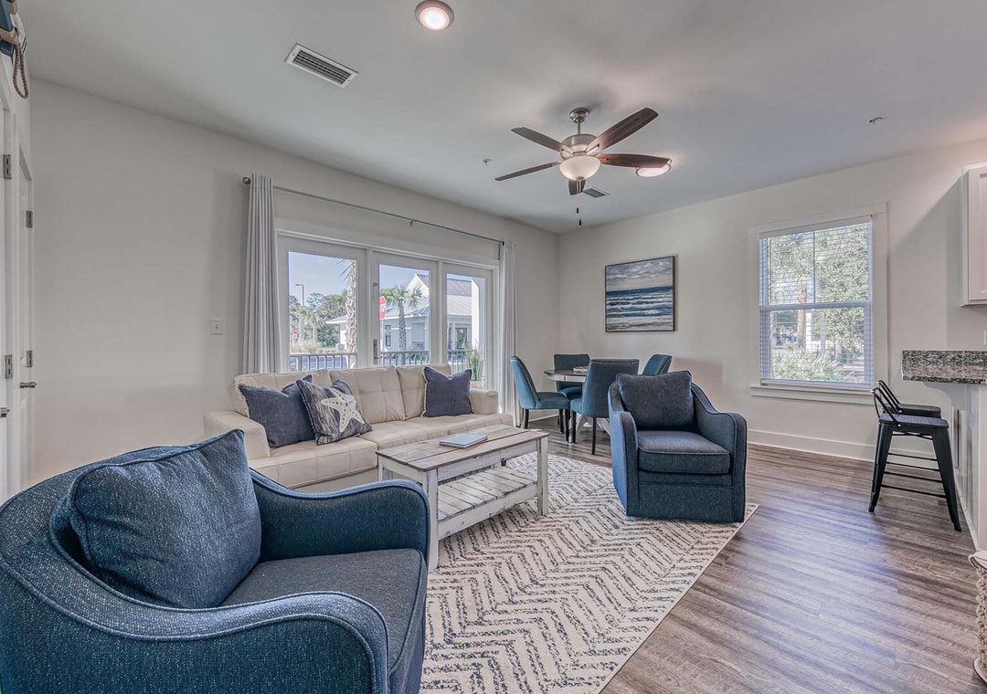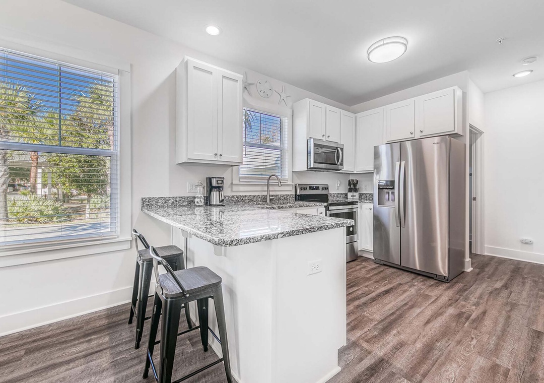 Welcome to Hidden Lakes 114, a stunning first-floor condo in a 30A developed community featuring modern architecture and premium amenities. Nestled just off the quiet west end of Scenic Highway 30A, this beautifully designed retreat boasts a fully equipped kitchen with granite countertops, brand-new stainless-steel appliances, an ice cream maker, an espresso machine, and a crockpot. Accommodating up to six guests, the condo offers a king bed in both the master and guest bedrooms, along with a queen sleeper sofa. Enjoy the zero-entry pool, take a leisurely stroll to the nearby beach, or explore Gulf Place Town Center just 0.5 miles away. For those who like to stay active, the on-site gym has everything you need. Experience an unforgettable beach getaway at Hidden Lakes 114!