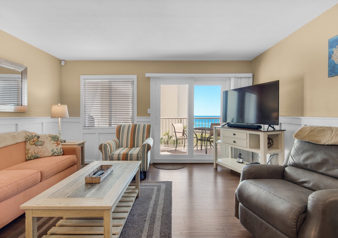 Welcome to Holiday Surf and Racquet Club 412! This beautifully renovated 1 bedroom, 1 bath condo offers a brand new king bed in the bedroom and a sleeper sofa in the living room to accommodate up to 4 guests comfortably. A fully equipped kitchen with upgraded stainless steel appliances and granite countertops will have you serving up the catch of the day with ease. Relax in the living room after a long day in the sun with a flat screen TV, laptop friendly workstation, or kickback in one of two recliners for a peaceful mid-afternoon nap. Unwind with your favorite beverage on the balcony which overlooks the pool, tennis courts, and the Gulf of Mexico. Discover why Holiday Surf and Racquet Club 412 is perfect for your next Destin vacation!