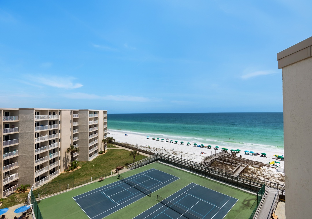 Holiday Surf and Racquet Club is located directly on the beach in exclusive Holiday Isle, which is a peninsula surrounded by the Gulf of Mexico and Destin Harbor. Amenities featured are the seasonally heated pool, 2 lighted tennis courts, BBQ grilling area, shuffleboard, exercise rooms and saunas. There is free wifi in the lobby and pool areas. There are also coin operated Laundry facilities.