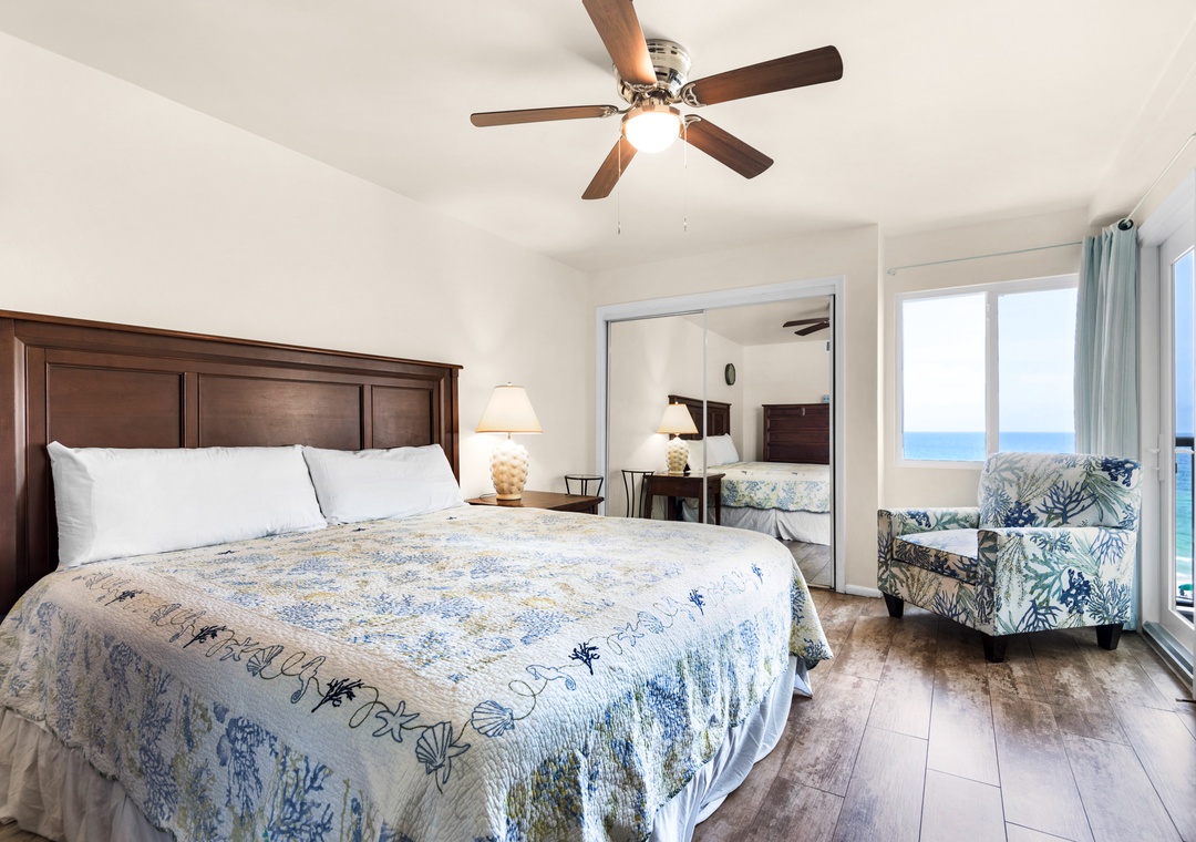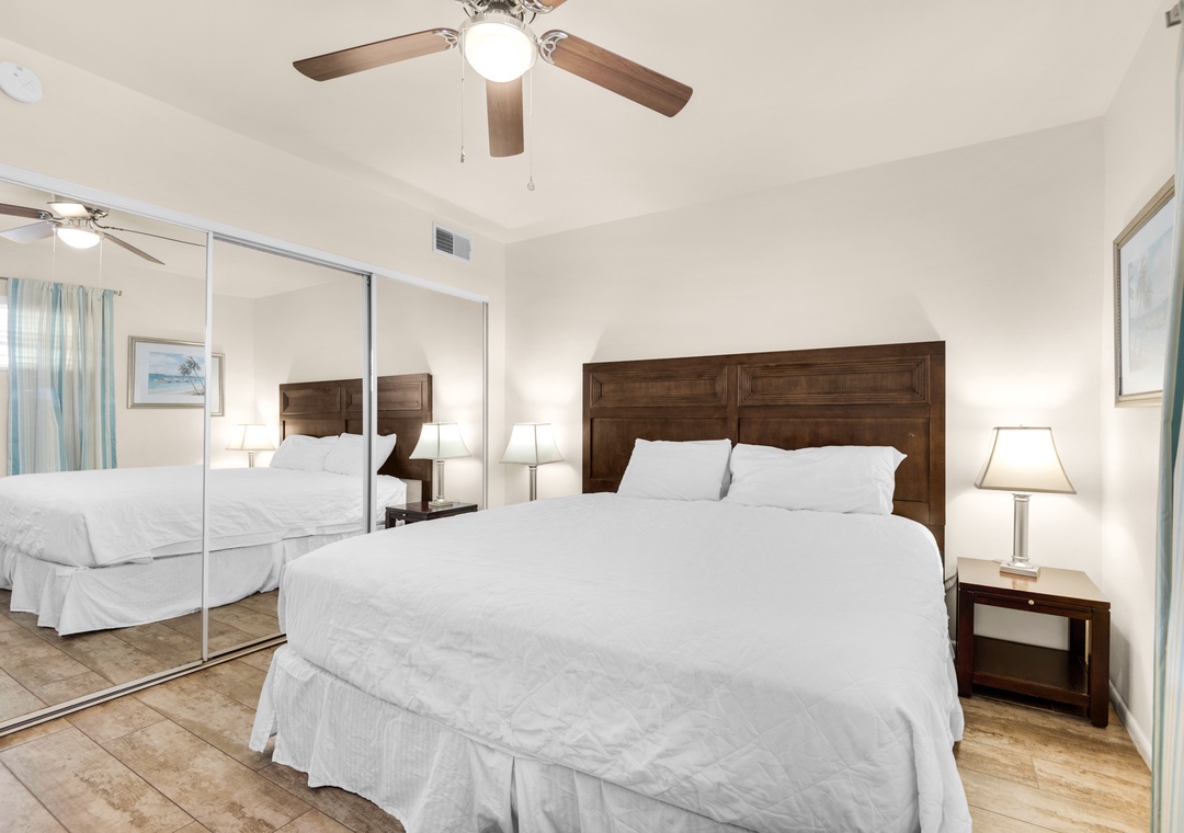This immaculately clean condo has two bedrooms and two baths. The condo boasts a DOUBLE MASTER setup with KING beds in each room including their own full bathrooms, and there's is a pull-out sofa bed in the living room. This is one of the ONLY condos with IN ROOM washer/dryer. The kitchen is fully equipped and the decor is tasteful and updated. This 7th floor unit has a balcony with excellent gulf views, perfect for enjoying evenings outside, and you are high enough to see the city, beach, water, everything!