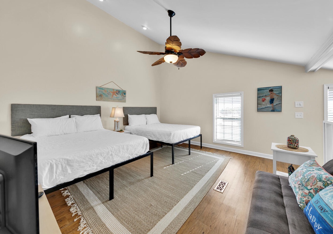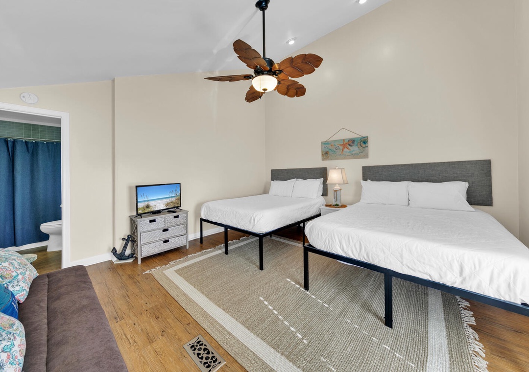 Please note: rackets, clubs, and sports balls are not provided—guests must bring their own. Private beach access is next to Sandpiper Beacon Resort, where beach chairs and umbrellas are available to rent during your stay.