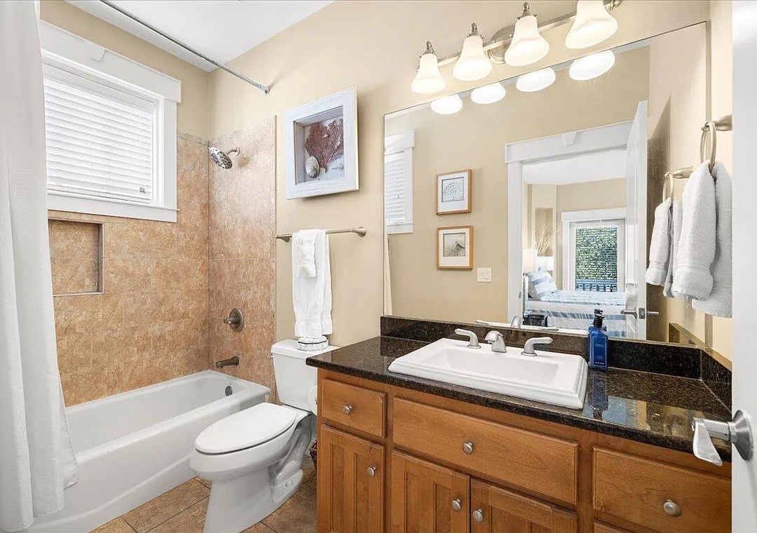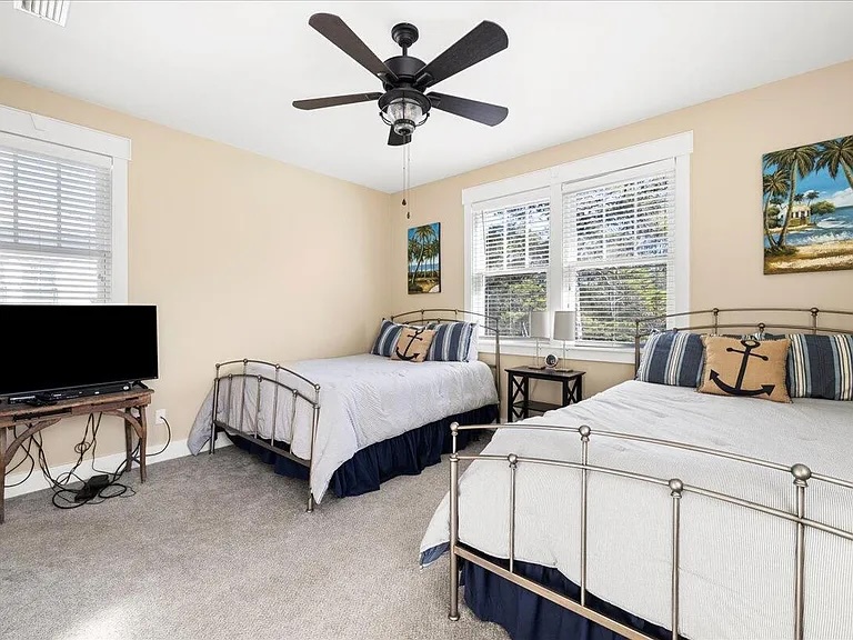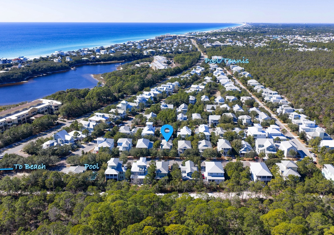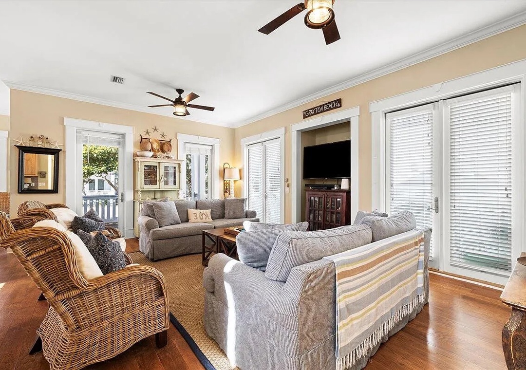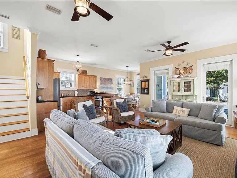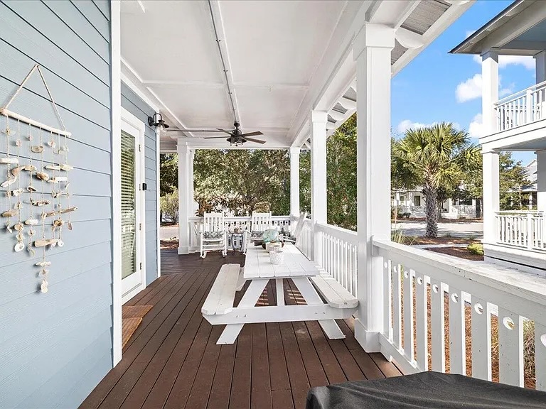 House of Blues is located in the beautiful, gated community of The Preserve, just steps from the beach. This professionally decorated 4-bedroom, 4-bathroom home features a relaxed Tommy Bahama style with soothing shades of blue, cream, and tan throughout. The home offers numerous upgrades, including custom cabinetry, granite countertops, top-of-the-line appliances, and comfortable, high-quality beds. Thoughtful details such as double vanities in select bathrooms, rocking chairs, and ceiling fans on both porches, and tasteful coastal décor create a welcoming and upscale retreat. Situated directly across the street from the community’s private beach boardwalk, you’ll enjoy easy access to the sugar-white sand and beautiful Gulf waters.