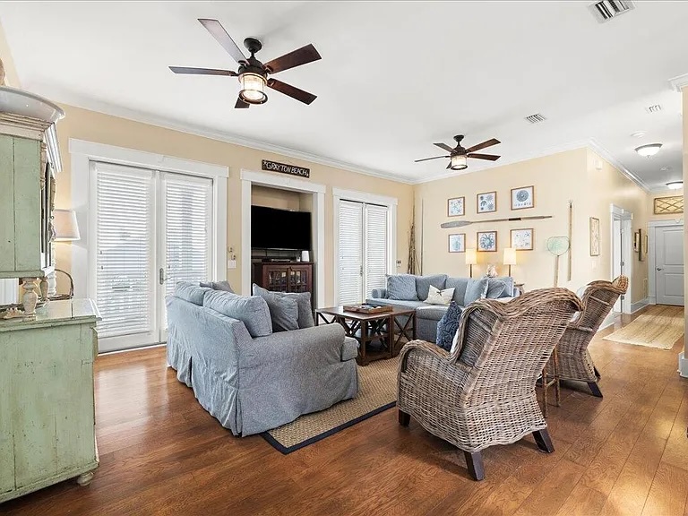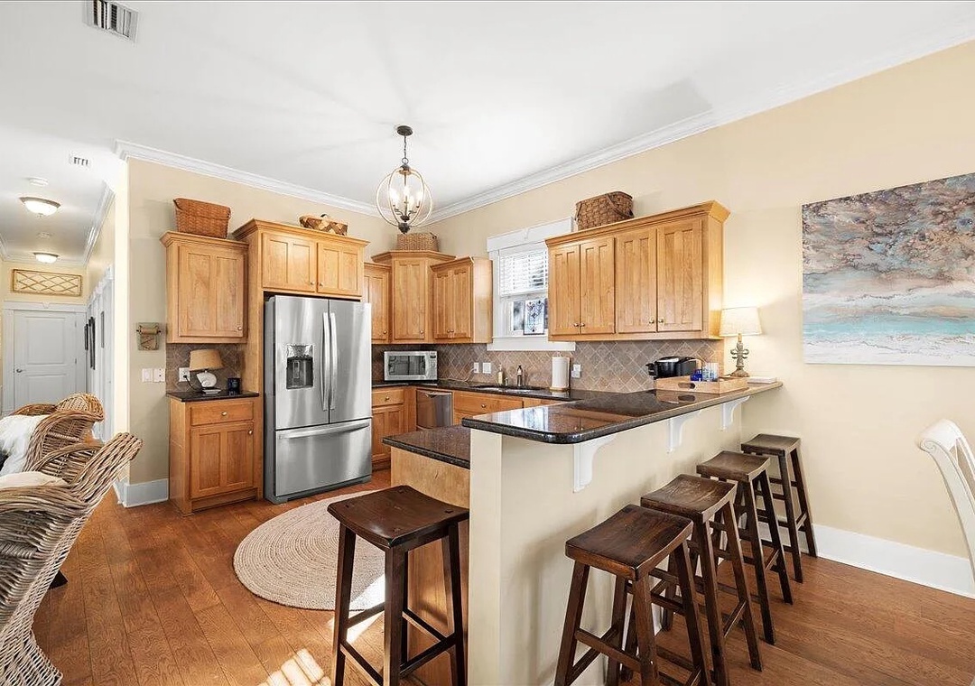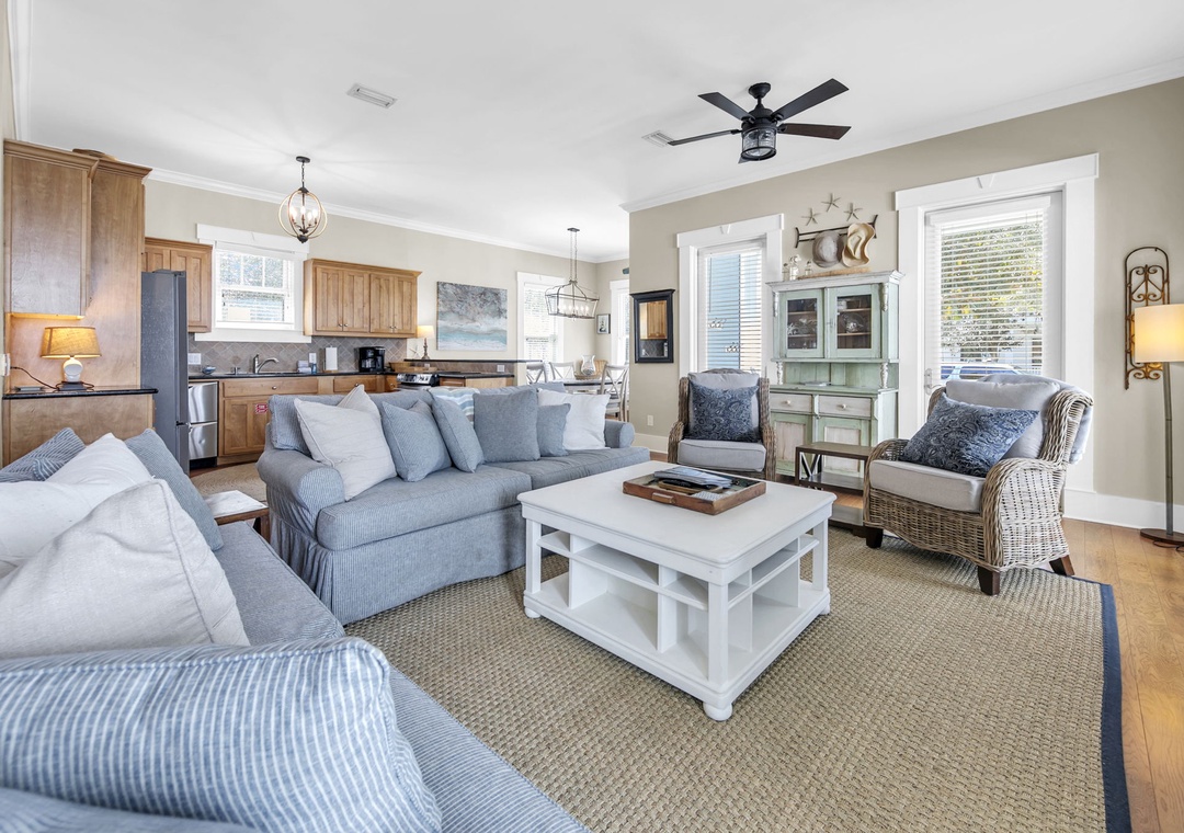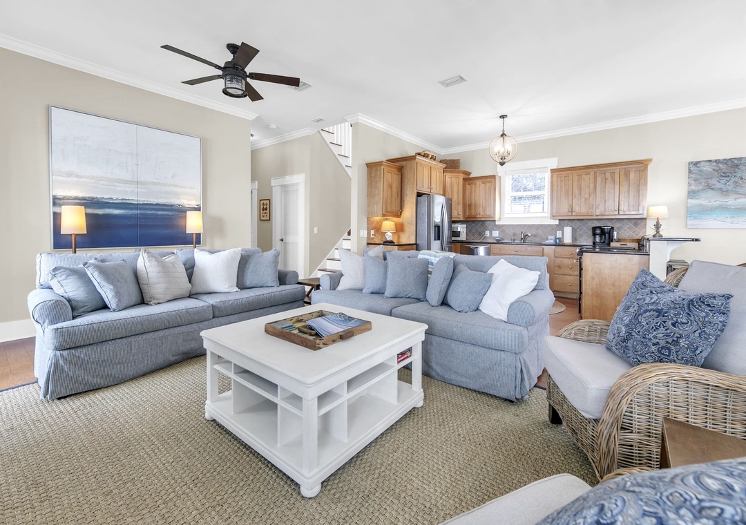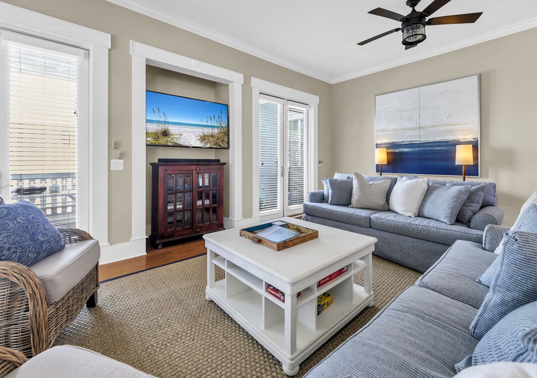 House of Blues is located in the beautiful, gated community of The Preserve, just steps from the beach. This professionally decorated 4-bedroom, 4-bathroom home features a relaxed Tommy Bahama style with soothing shades of blue, cream, and tan throughout. The home offers numerous upgrades, including custom cabinetry, granite countertops, top-of-the-line appliances, and comfortable, high-quality beds. Thoughtful details such as double vanities in select bathrooms, rocking chairs, and ceiling fans on both porches, and tasteful coastal décor create a welcoming and upscale retreat. Situated directly across the street from the community’s private beach boardwalk, you’ll enjoy easy access to the sugar-white sand and beautiful Gulf waters.