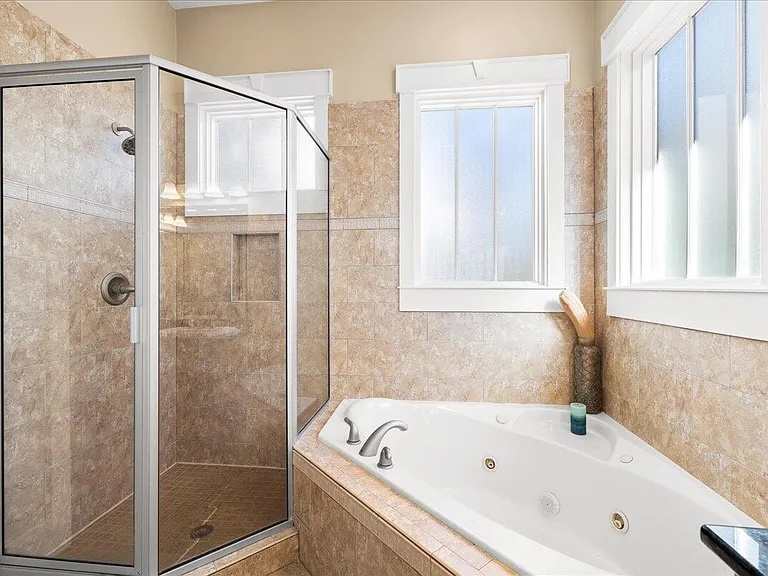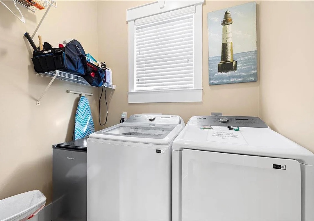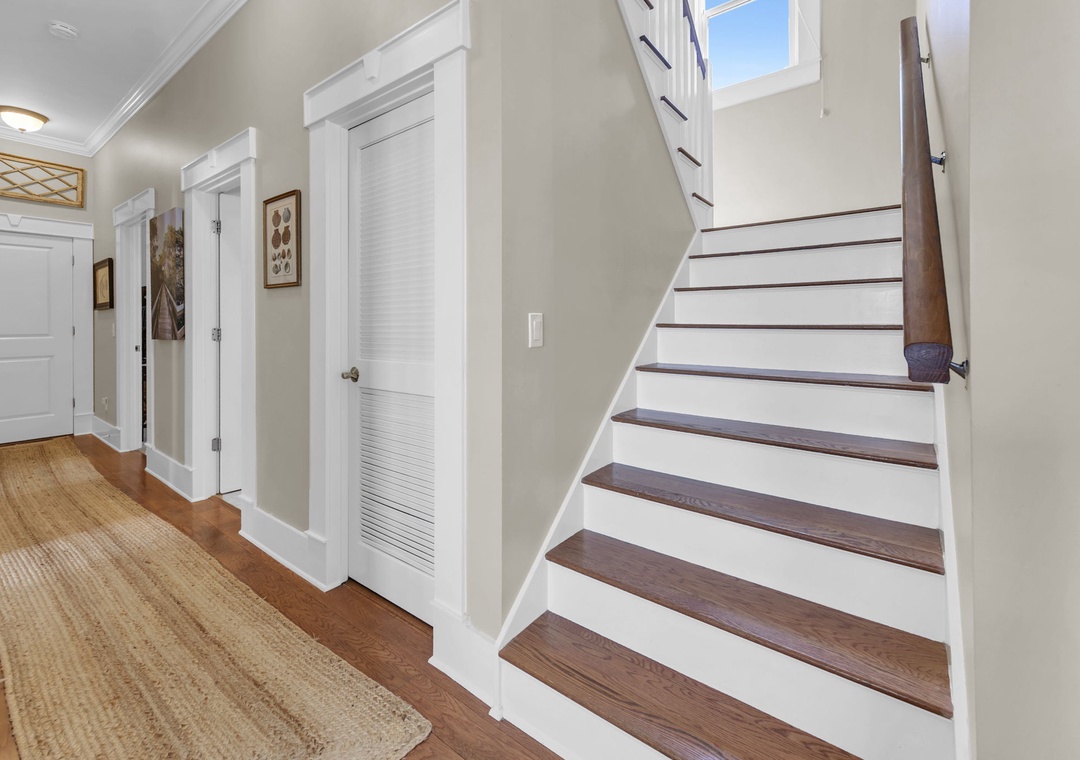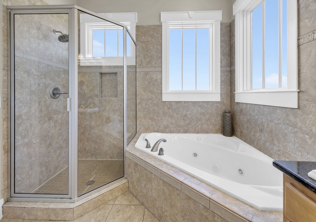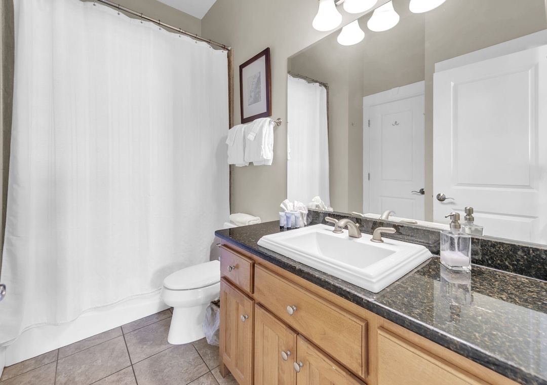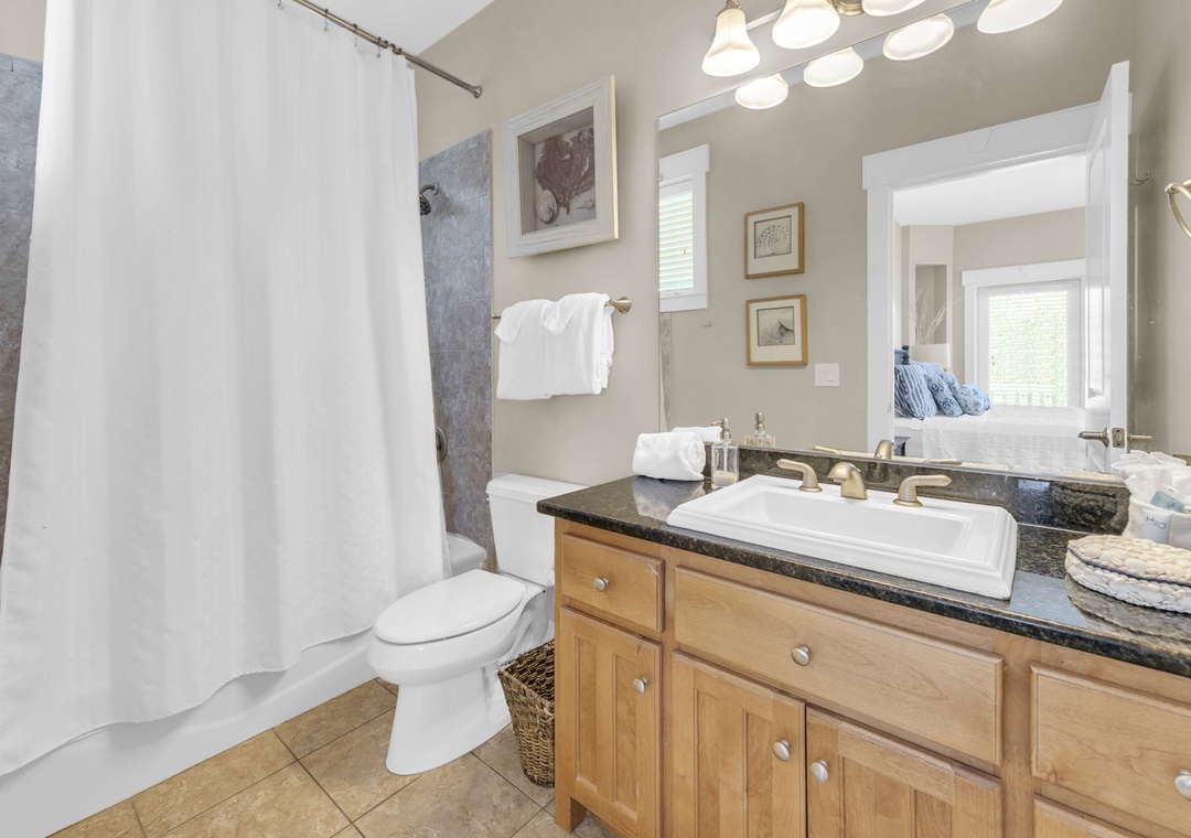 Upstairs, you’ll find an additional primary suite with a king-size bed and a private bathroom. The fourth bedroom includes two queen beds, offering plenty of space for family and friends.