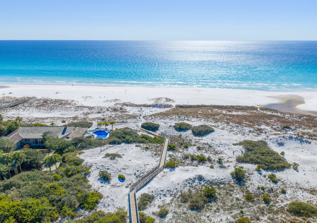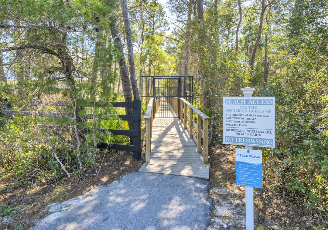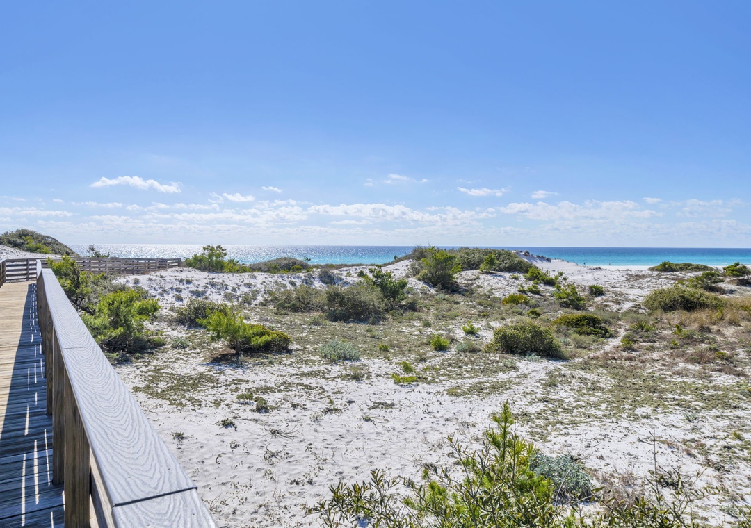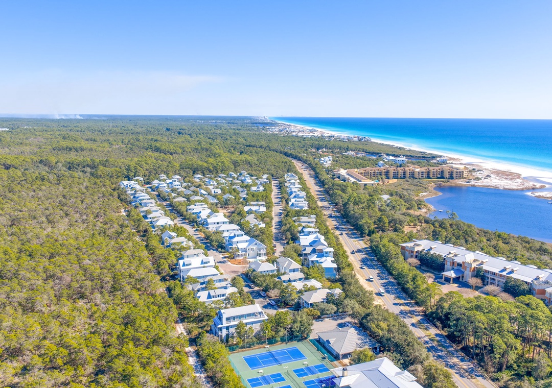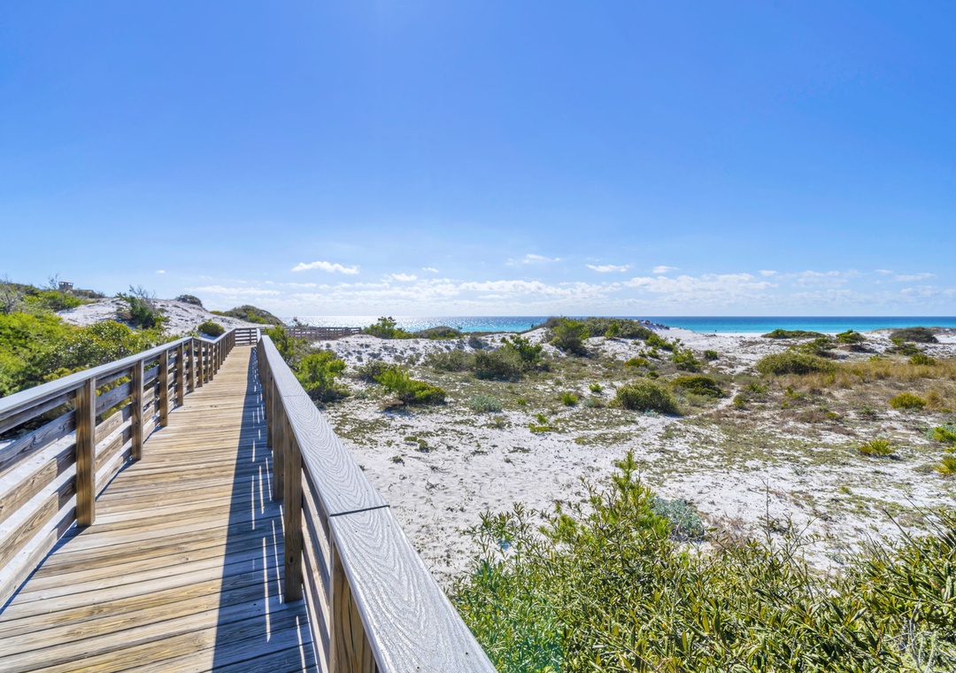 Grayton Beach is a laid-back, organic beach town with old-style wooden beach bungalows and narrow neighborhood streets lined with live oaks. You'll also get a “hippie kitsch” feel, having the iconic Red Bar a stroll away. Take the neighborhood boardwalk to the beach or hop on the bikes and head 2.4 miles to explore Seaside. This cool little beach town is also home to the diverse coastal ecosystems of Western Lake and Grayton Beach State Park and is a gateway to a large expanse of sugar-white beach that is a haven for fishermen, boaters, and beachcombers alike.