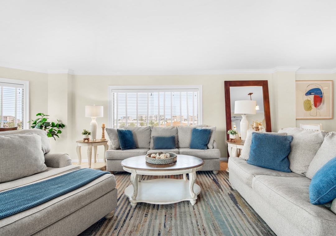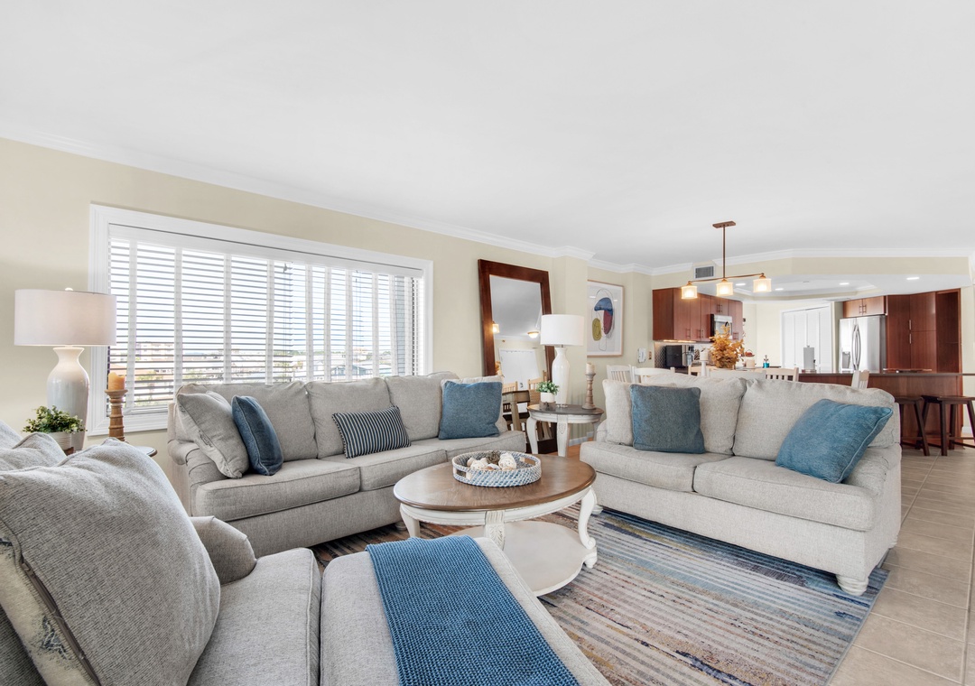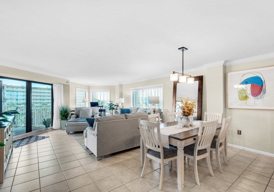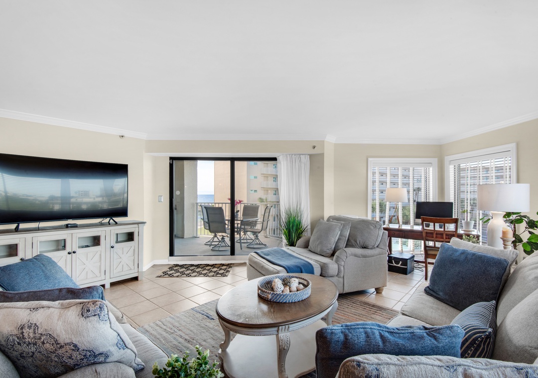 Step into Inlet Reef 319, a seaside haven nestled on the exclusive Holiday Isle—a tranquil peninsula embraced by the Gulf of Mexico and Destin Harbor. Revel in the allure of this remarkable 3rd-floor condo boasting three bedrooms and two baths, designed to host up to 8 guests in absolute comfort. This unit allows a maximum of 8 guests, no exceptions. The master bedroom features a king bed, while guest room 1 offers a queen bed, and guest room 2 provides 2 twin beds. Additional sleeping space is available with a sleeper sofa in the inviting living room. Embrace the expansive layout that allows for leisurely lounging.