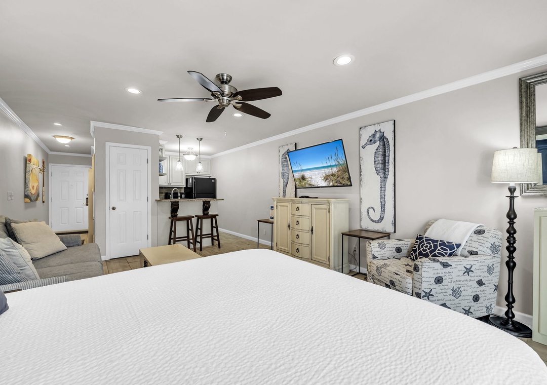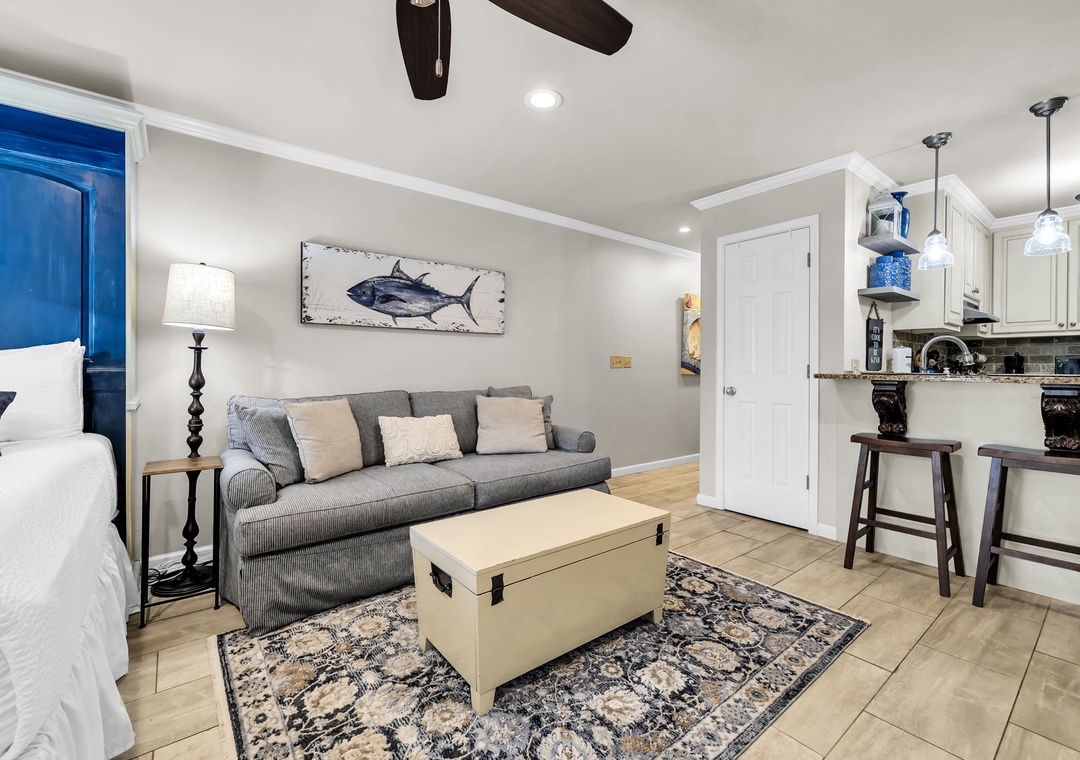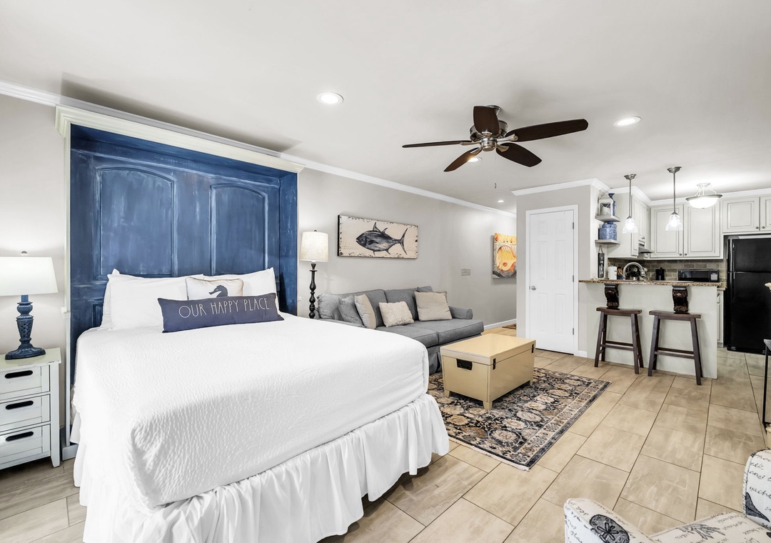 This thoughtfully designed studio is ideal for couples or small families looking for comfort, convenience, and location.