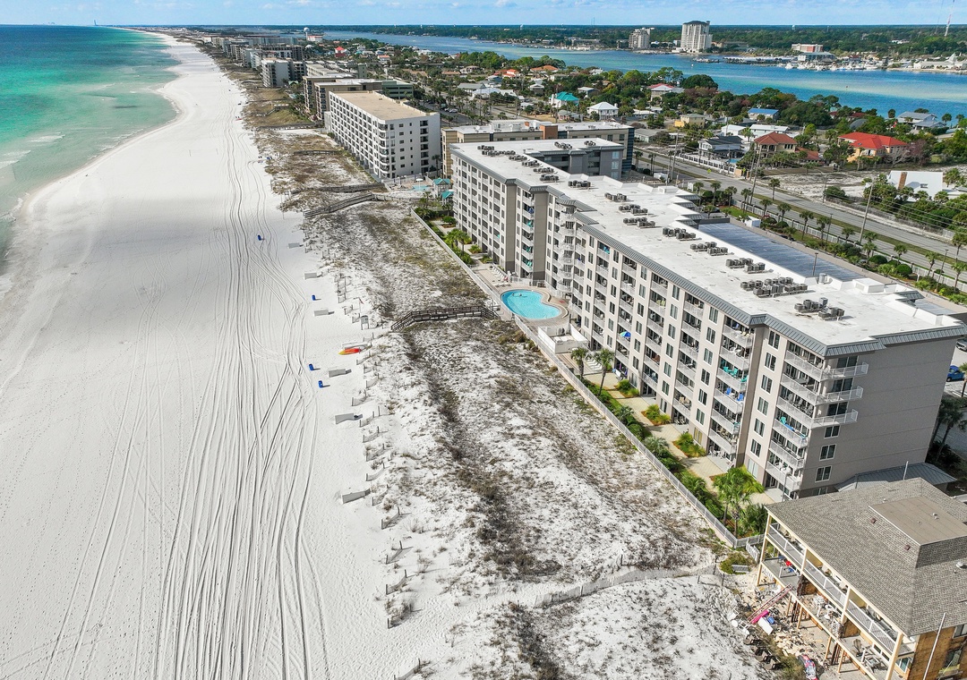 The Island Princess is a 7-story complex with 136 units featuring gulf-front balconies in the heart of Okaloosa Island. Watch dolphins frolic from your own private, gulf-front balcony or take a swim in the lovely, gulf-front pool (heated seasonally). Soak your cares away in the hot tub or grill up your fresh catch on the provided grills. Need to keep up with your workout? Use the fitness center and don't miss a beat. The covered parking area will keep your vehicle out of the tropical sun.
