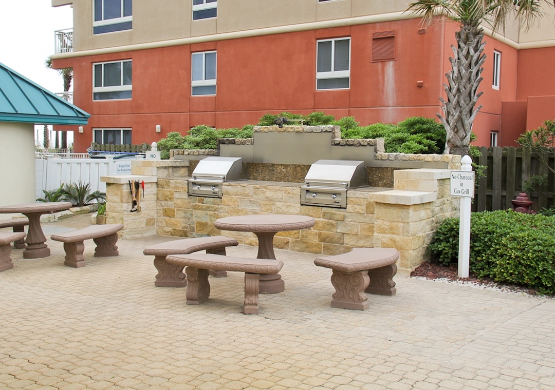 * Beachfront Pool, Hot Tub, Fitness Center, Lighted Tennis Courts, and Grills