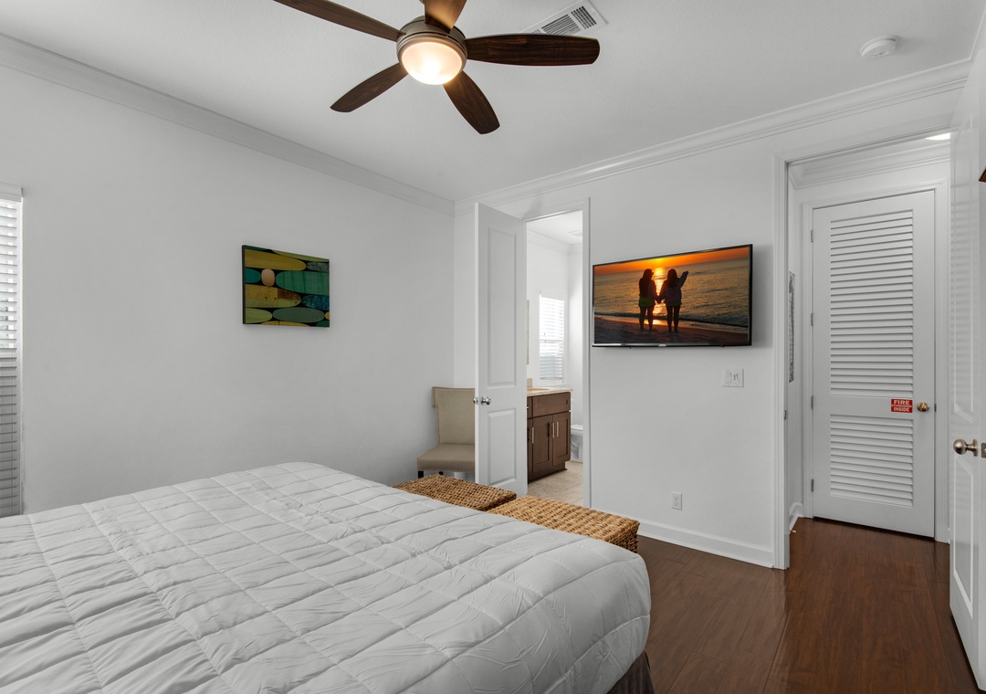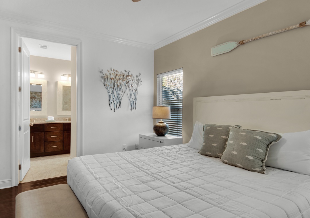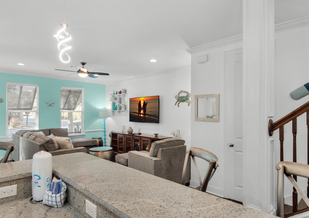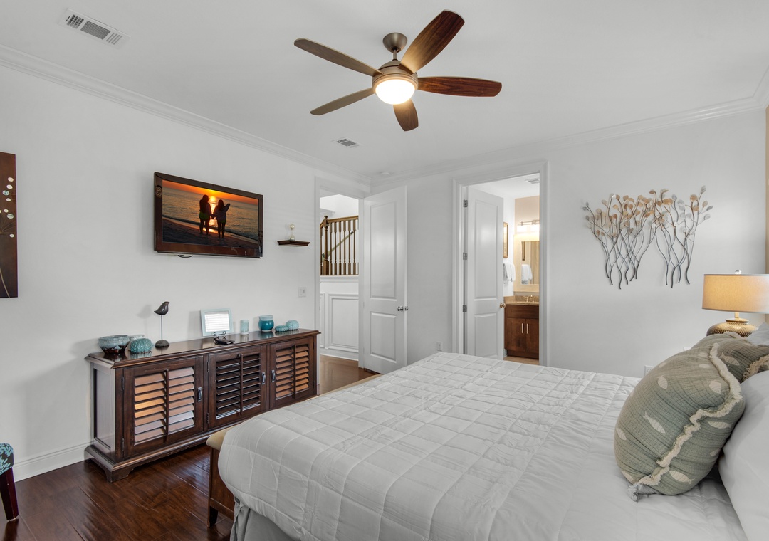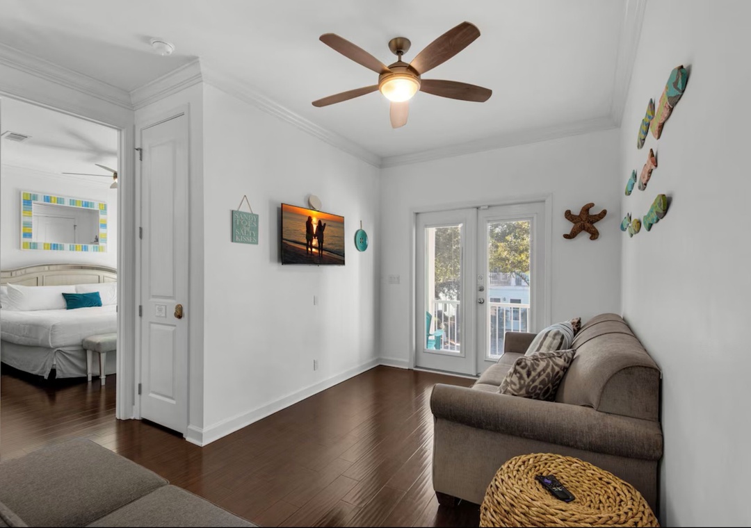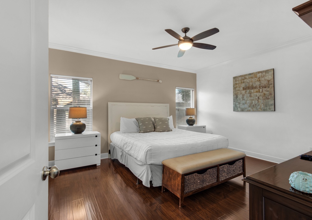 Villages of Crystal Beach is an exclusive, gated community only a few blocks from the beautiful blue waters and white sandy beaches of Destin. You can make the walk on foot or hop on the free seasonal trolley service (Memorial Day through Labor Day) they will even pick you up at the house and drop you off right at the beach! The pool area at Villages of Crystal Beach is a vacation must! The lagoon style zero entry pool is 30,000 square feet of gorgeous, sparkling clear water. There is a spa, tropical landscaping, and plenty of seating areas. It also has surround sound, a flat screen TV, and a grilling area to help you relax and unwind.