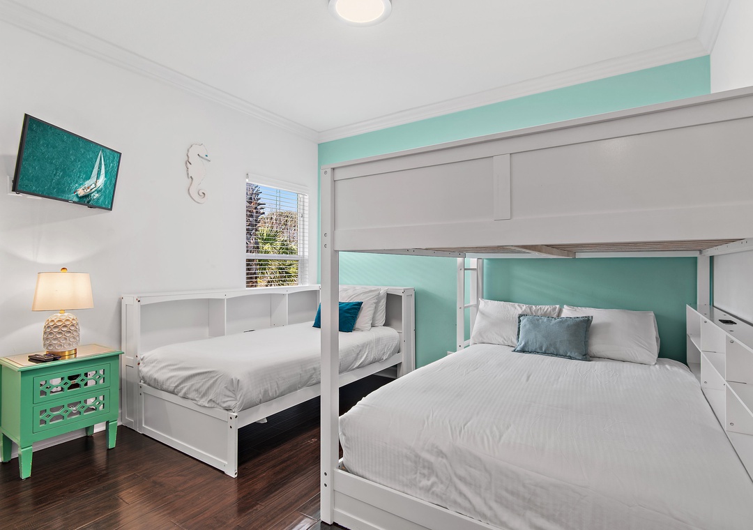Guest Bedroom 3: 1 Queen over Queen bunk bed and 1 twin bed