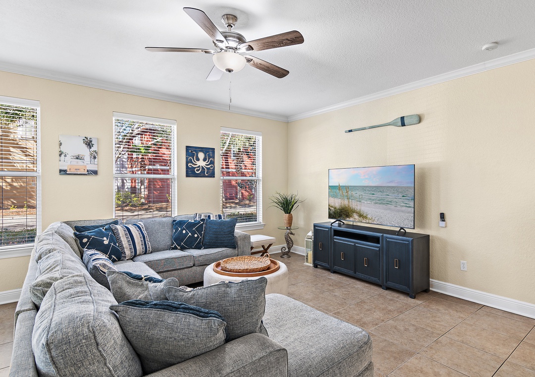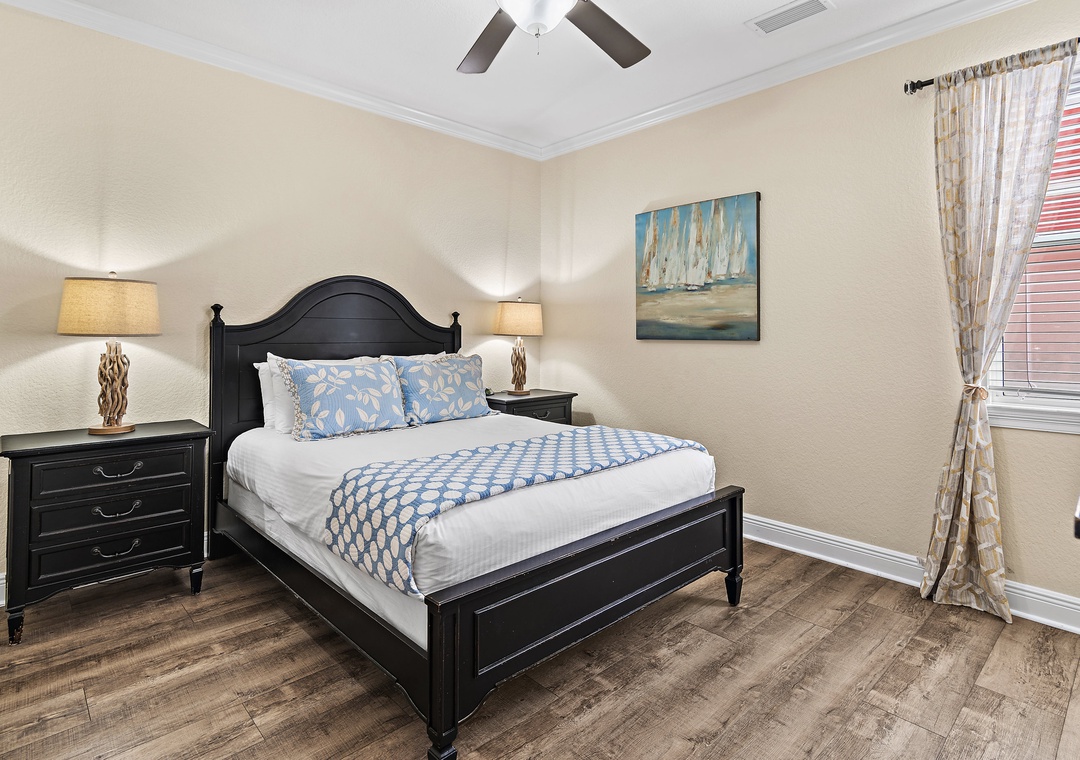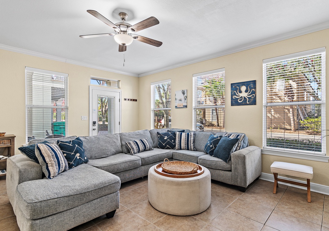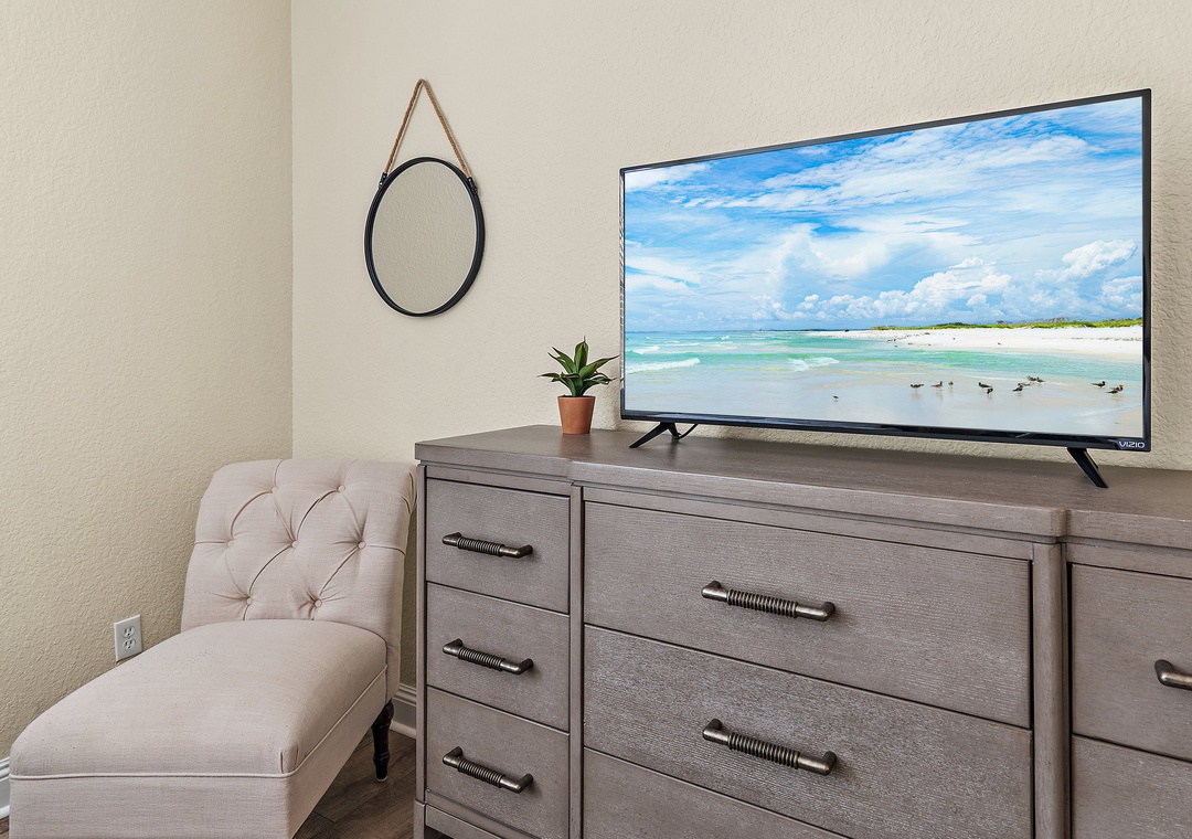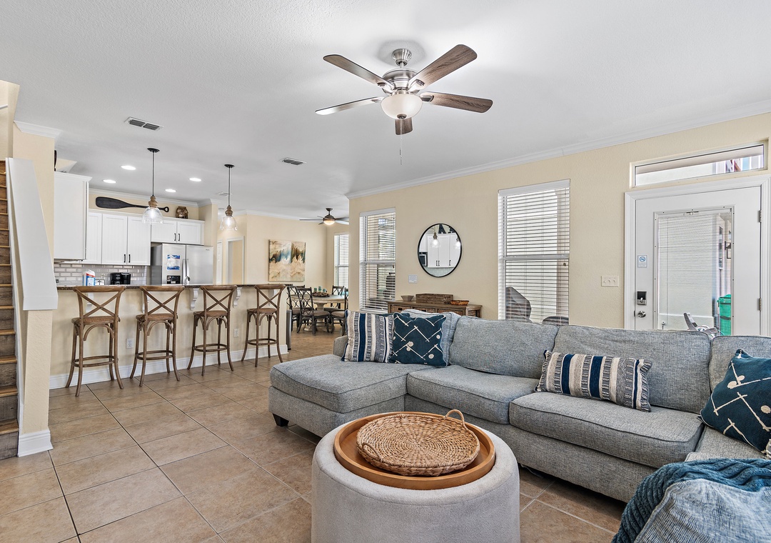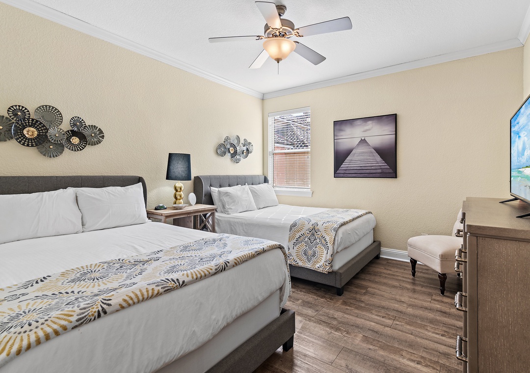 Villages of Crystal Beach is an exclusive, gated community only a few blocks from the beautiful blue waters and white sandy beaches of Destin. You can make the walk on foot or hop on the free seasonal trolley service (Memorial Day through Labor Day): they will even pick you up at the house and drop you off right at the beach! The pool area at Villages of Crystal Beach is a vacation must! The lagoon-style zero-entry pool is 30,000 square feet of gorgeous, sparkling, clear water. There is a spa, tropical landscaping, and plenty of seating areas. It also has surround sound and a flat-screen TV to help you relax and unwind.