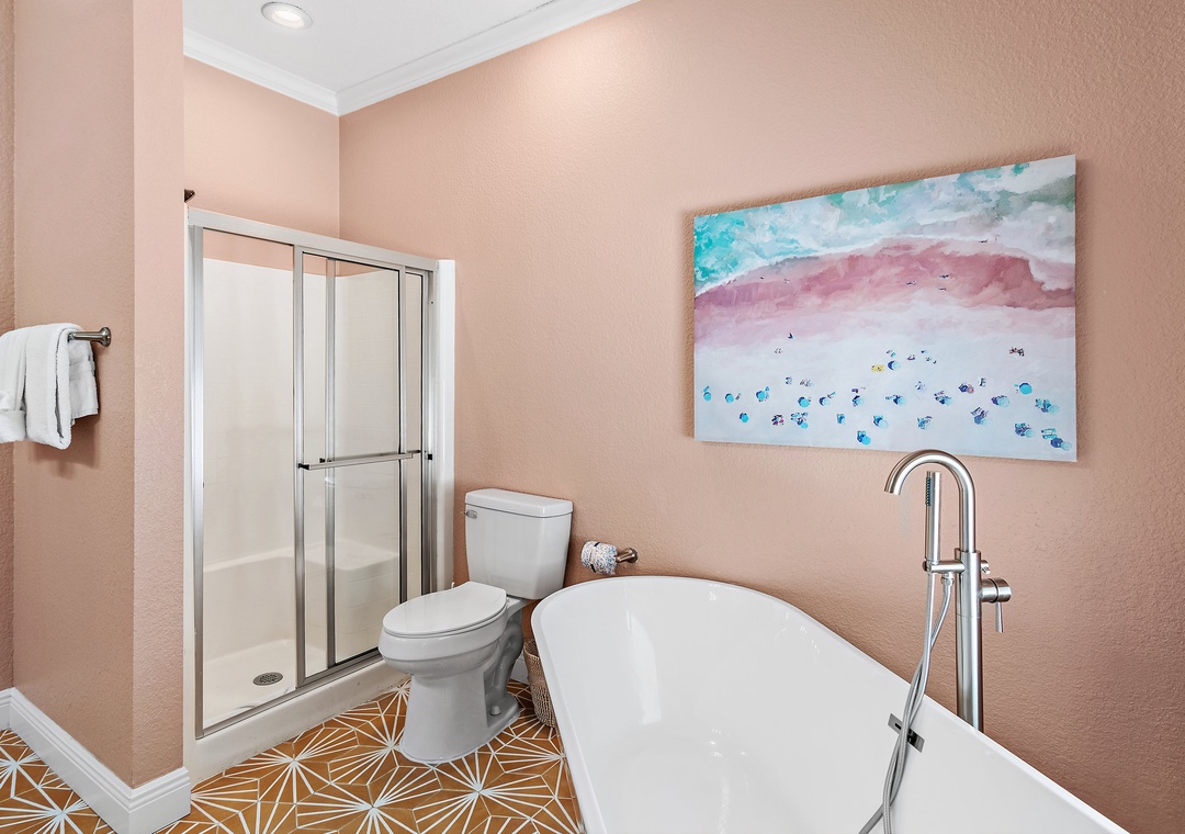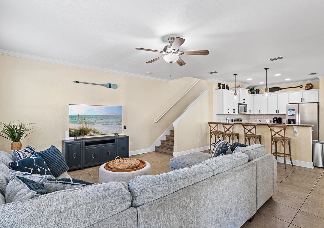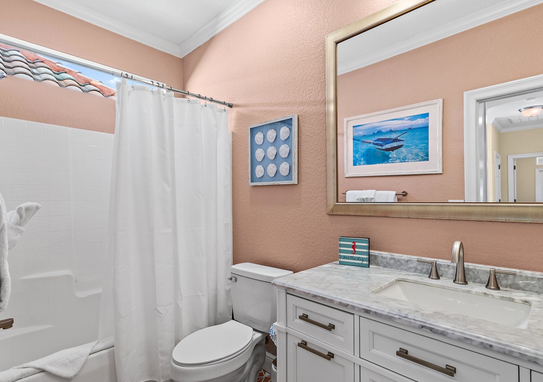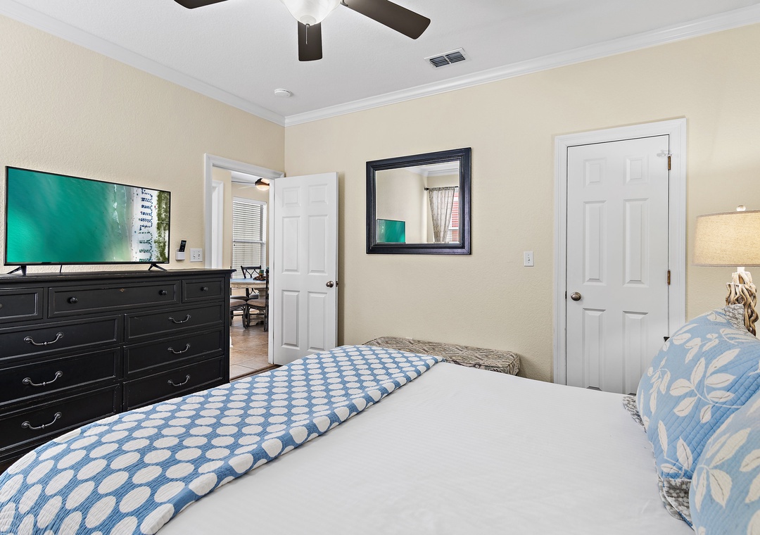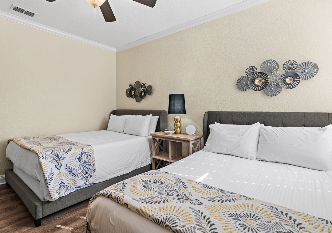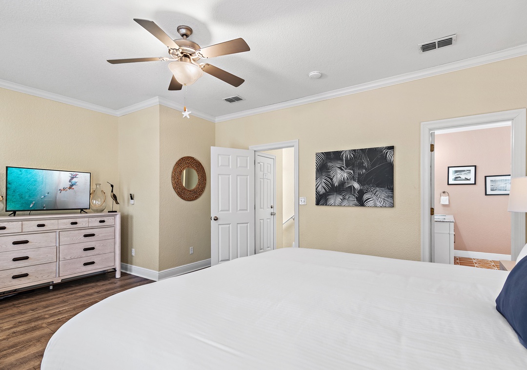 Villages of Crystal Beach is an exclusive, gated community only a few blocks from the beautiful blue waters and white sandy beaches of Destin. You can make the walk on foot or hop on the free seasonal trolley service (Memorial Day through Labor Day): they will even pick you up at the house and drop you off right at the beach! The pool area at Villages of Crystal Beach is a vacation must! The lagoon-style zero-entry pool is 30,000 square feet of gorgeous, sparkling, clear water. There is a spa, tropical landscaping, and plenty of seating areas. It also has surround sound and a flat-screen TV to help you relax and unwind.