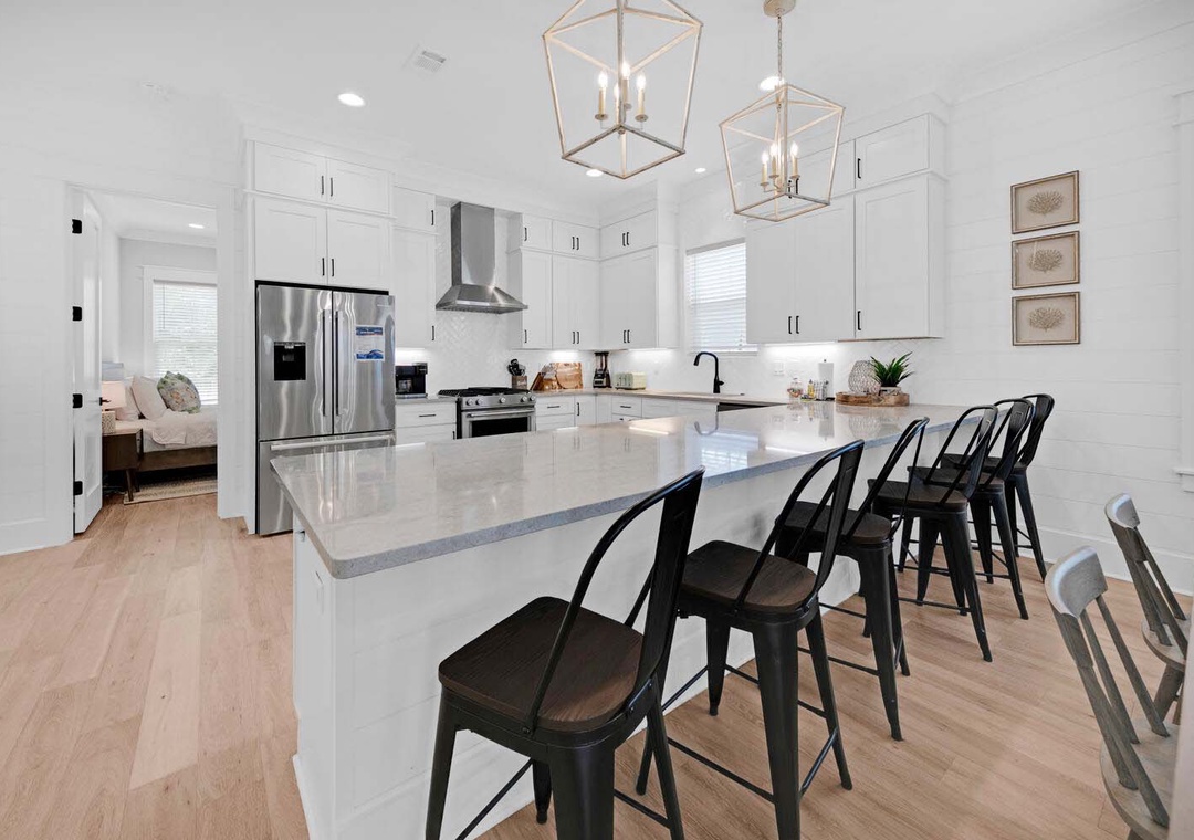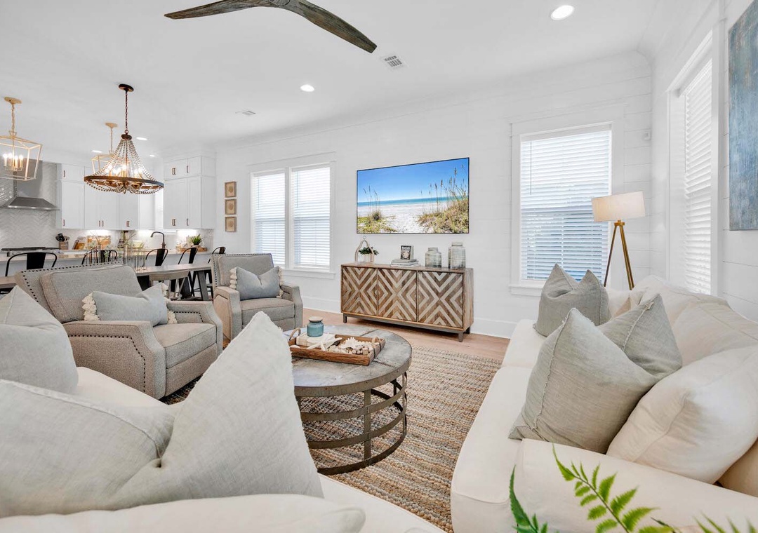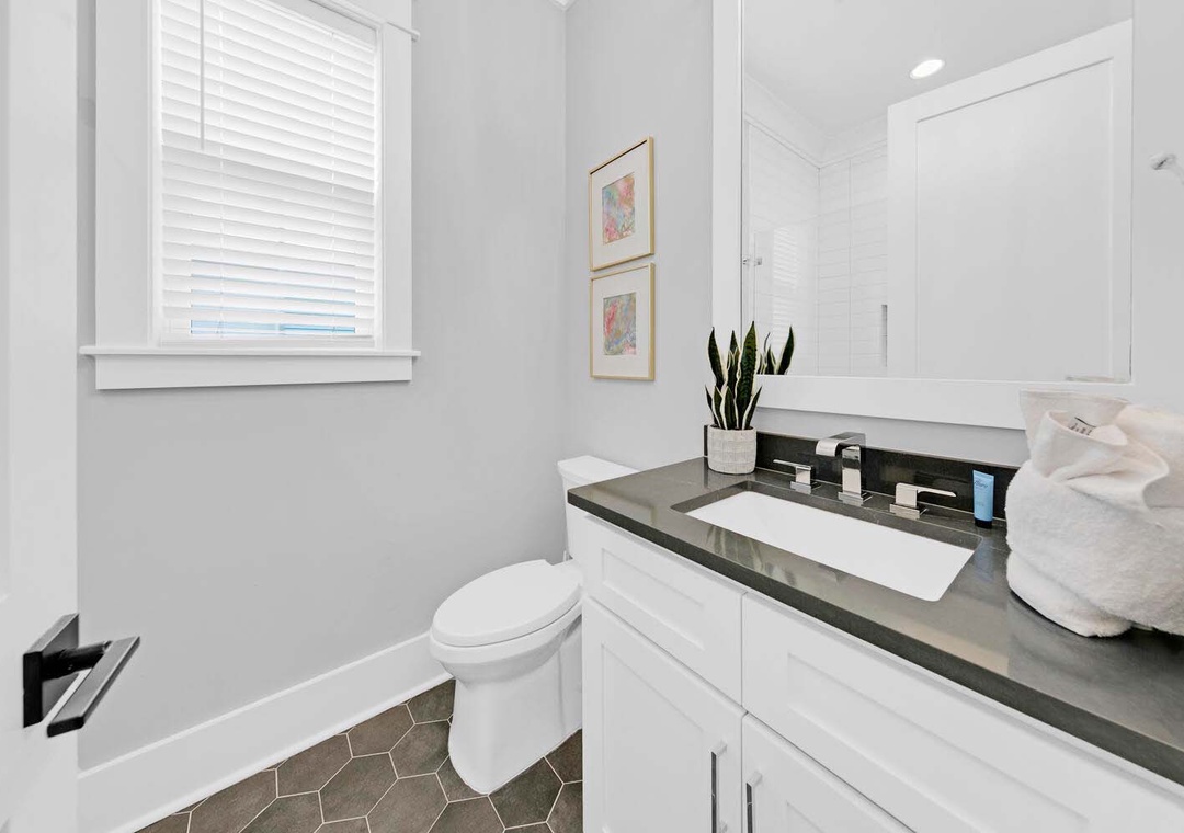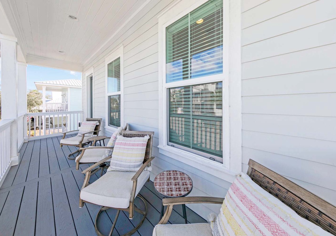 Keeping It Reel on 30A is a lovely 3 bedroom, 3 1/2 bath beach house that is the perfect vacation getaway for your family and friends. You will love hanging in the backyard around the firepit or under the covered porch. The chef in your group will love the modern kitchen filled with ample storage space to put things for your group's next meal. There is ample seating in the dining area as well. On the first floor you will have a king guest bedroom with an en suite bathroom and the living room has a sleeper sofa. On the second floor, you will find the master king bedroom and a sleeper sofa with an en suite bathroom and a king guest bedroom with an en suite bathroom which makes this home sleep up to 10 comfortably. Join us not to embark on a journey of creating timeless beach memories that will be cherished for a lifetime at Keeping It Reel on 30A!