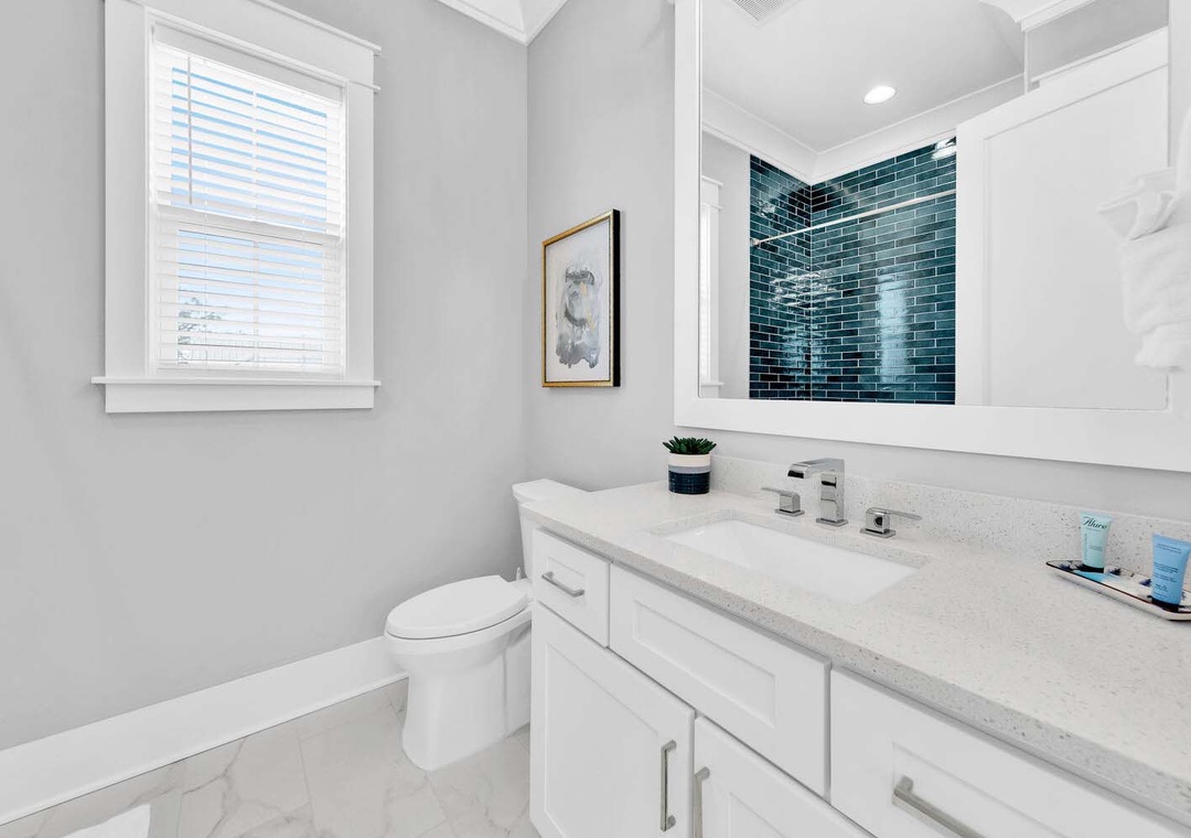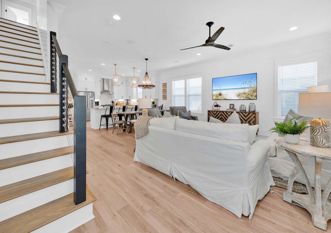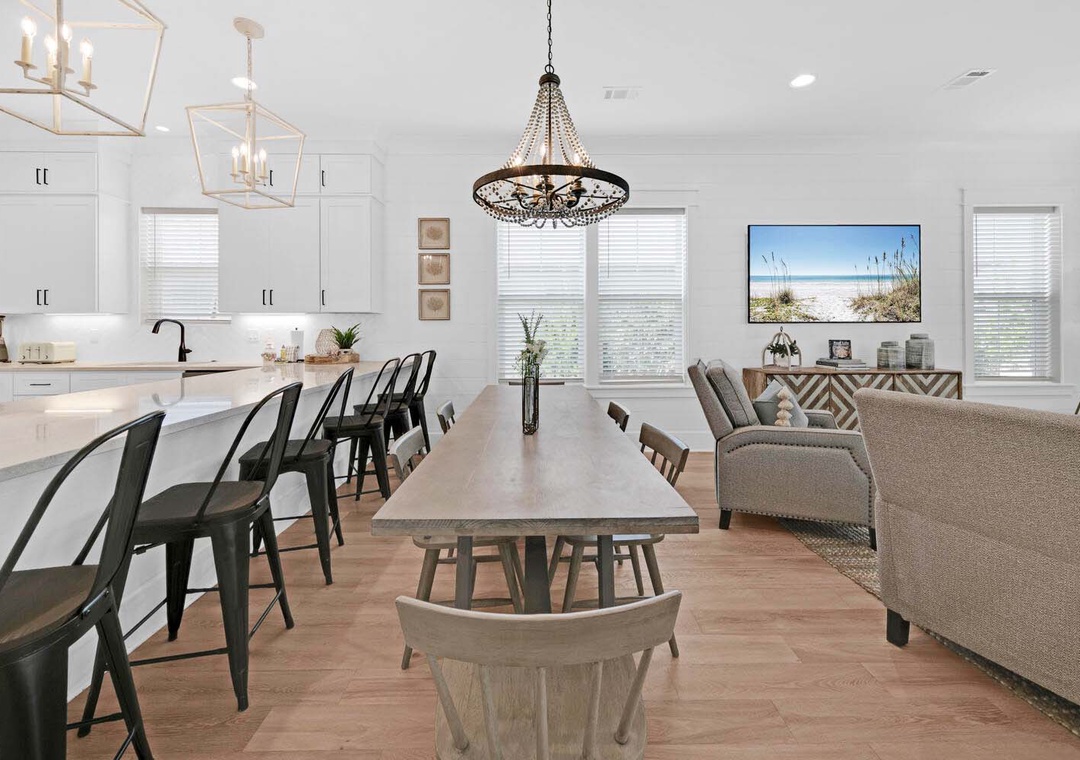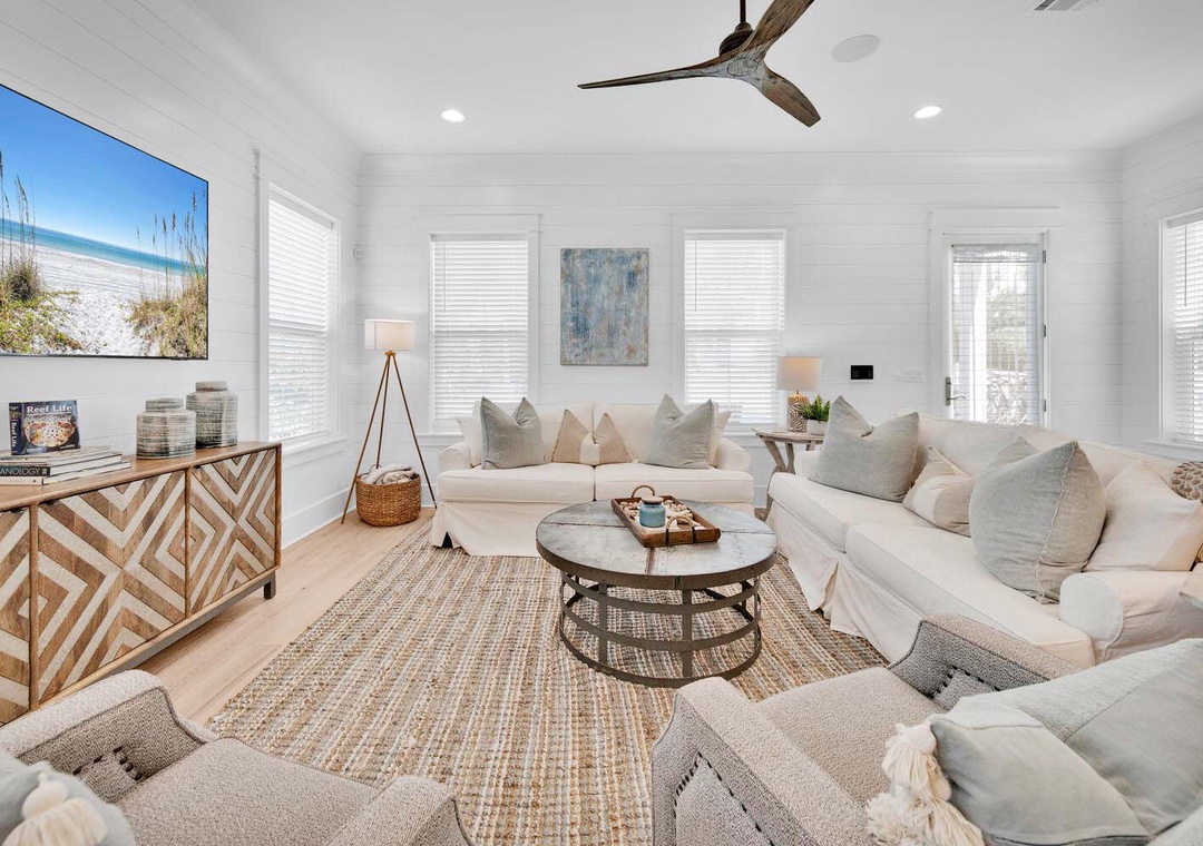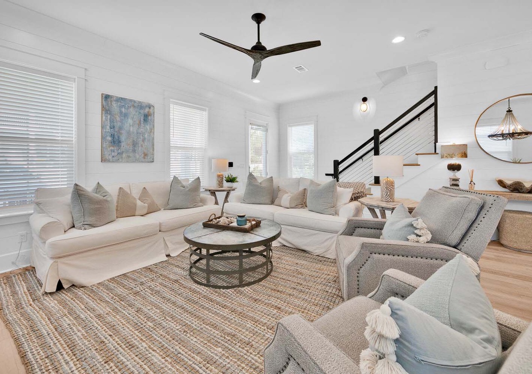 Keeping It Reel on 30A is a lovely 3 bedroom, 3 1/2 bath beach house that is the perfect vacation getaway for your family and friends. You will love hanging in the backyard around the firepit or under the covered porch. The chef in your group will love the modern kitchen filled with ample storage space to put things for your group's next meal. There is ample seating in the dining area as well. On the first floor you will have a king guest bedroom with an en suite bathroom and the living room has a sleeper sofa. On the second floor, you will find the master king bedroom and a sleeper sofa with an en suite bathroom and a king guest bedroom with an en suite bathroom which makes this home sleep up to 10 comfortably. Join us not to embark on a journey of creating timeless beach memories that will be cherished for a lifetime at Keeping It Reel on 30A!