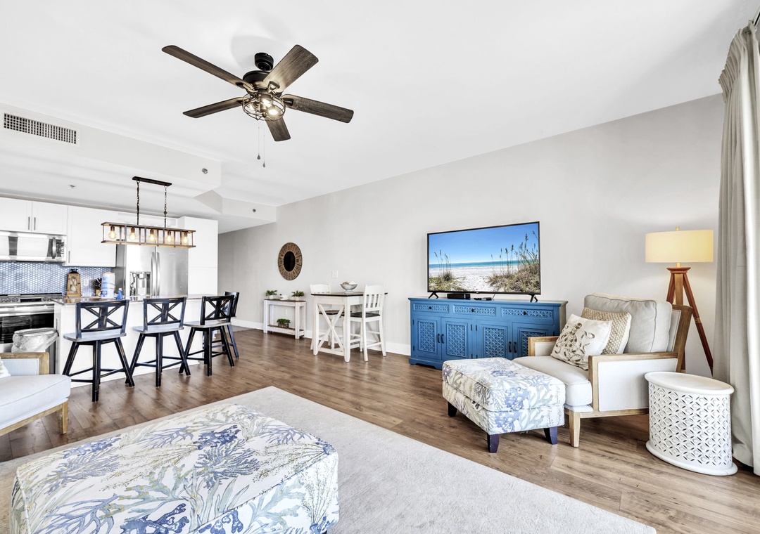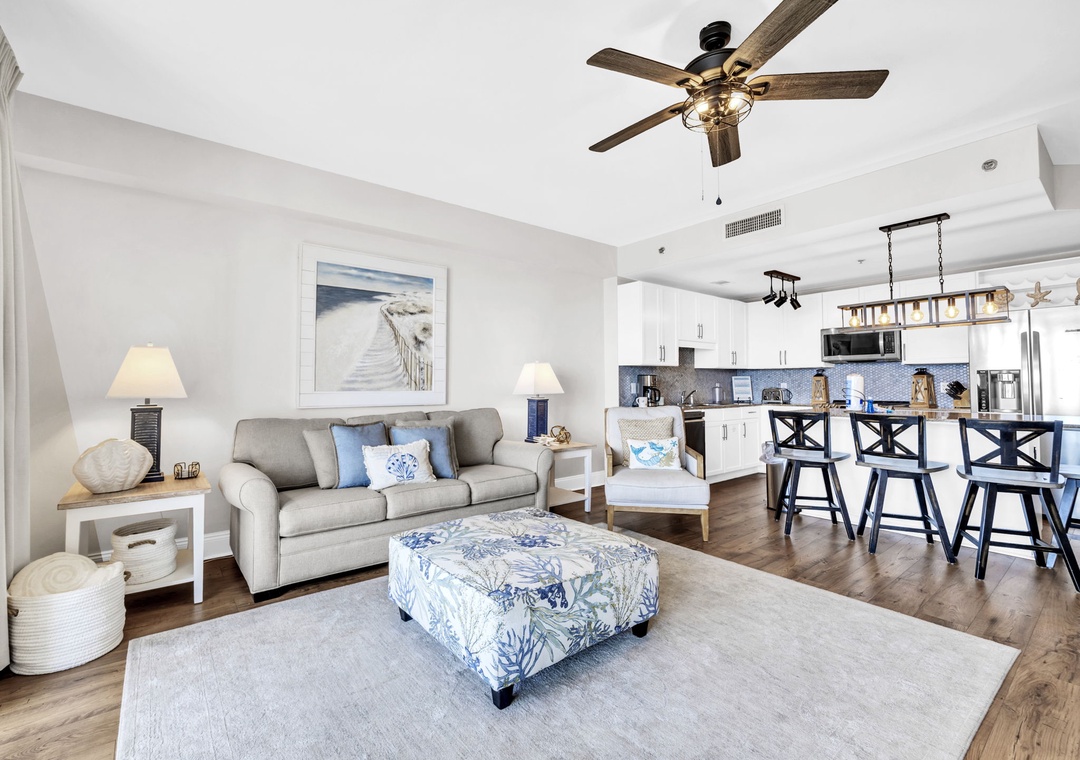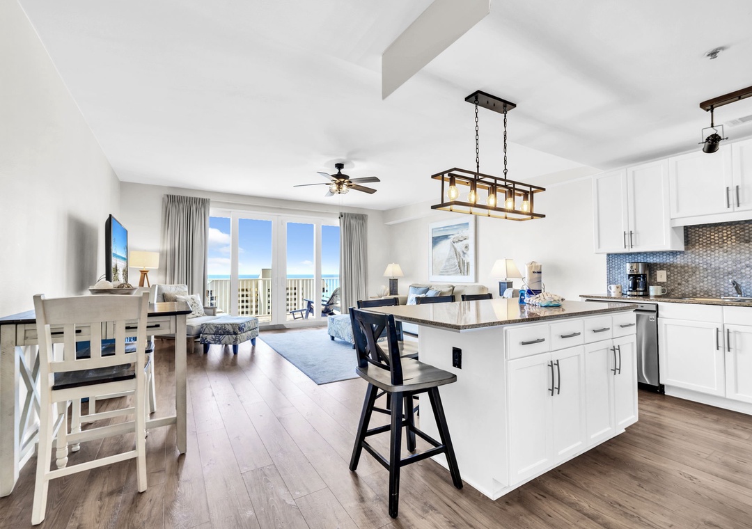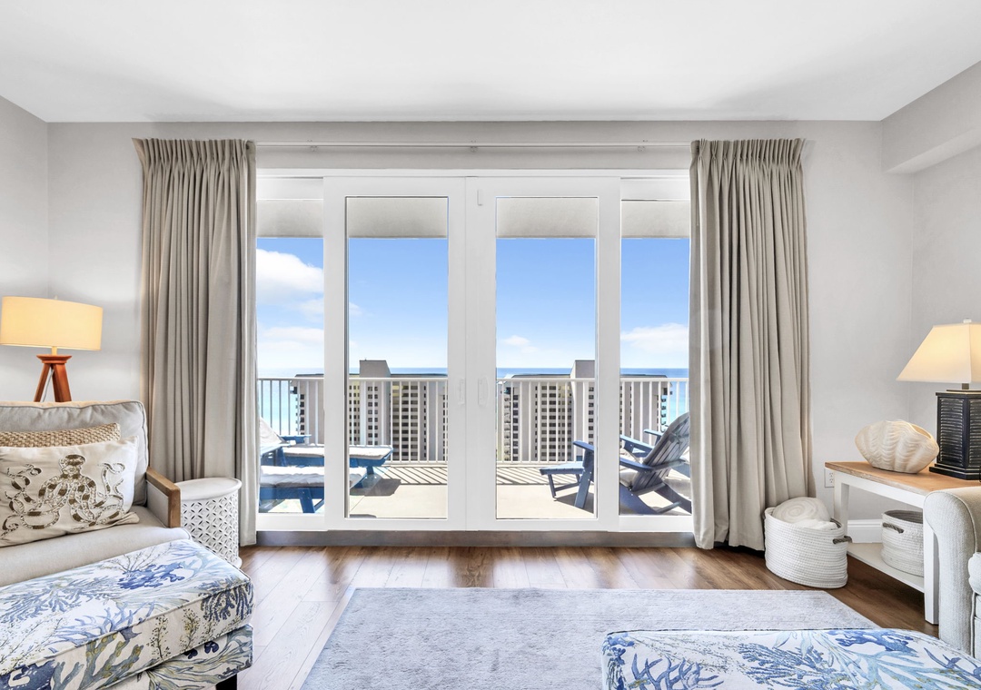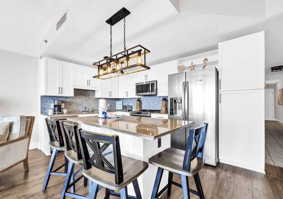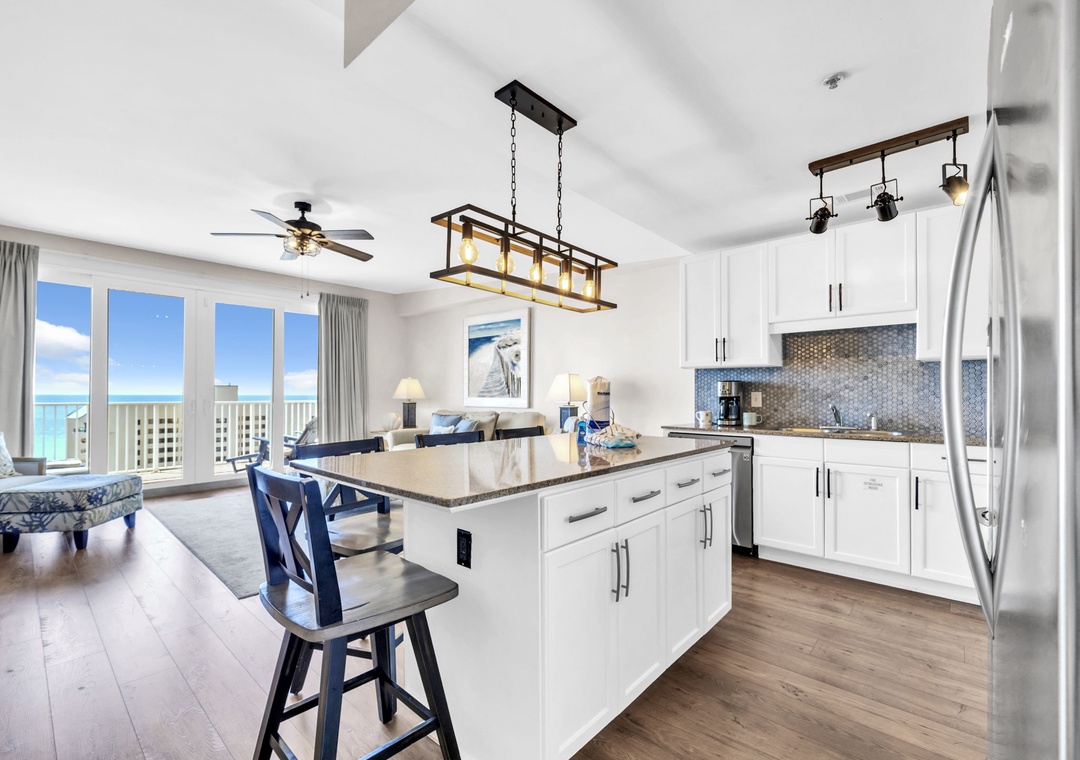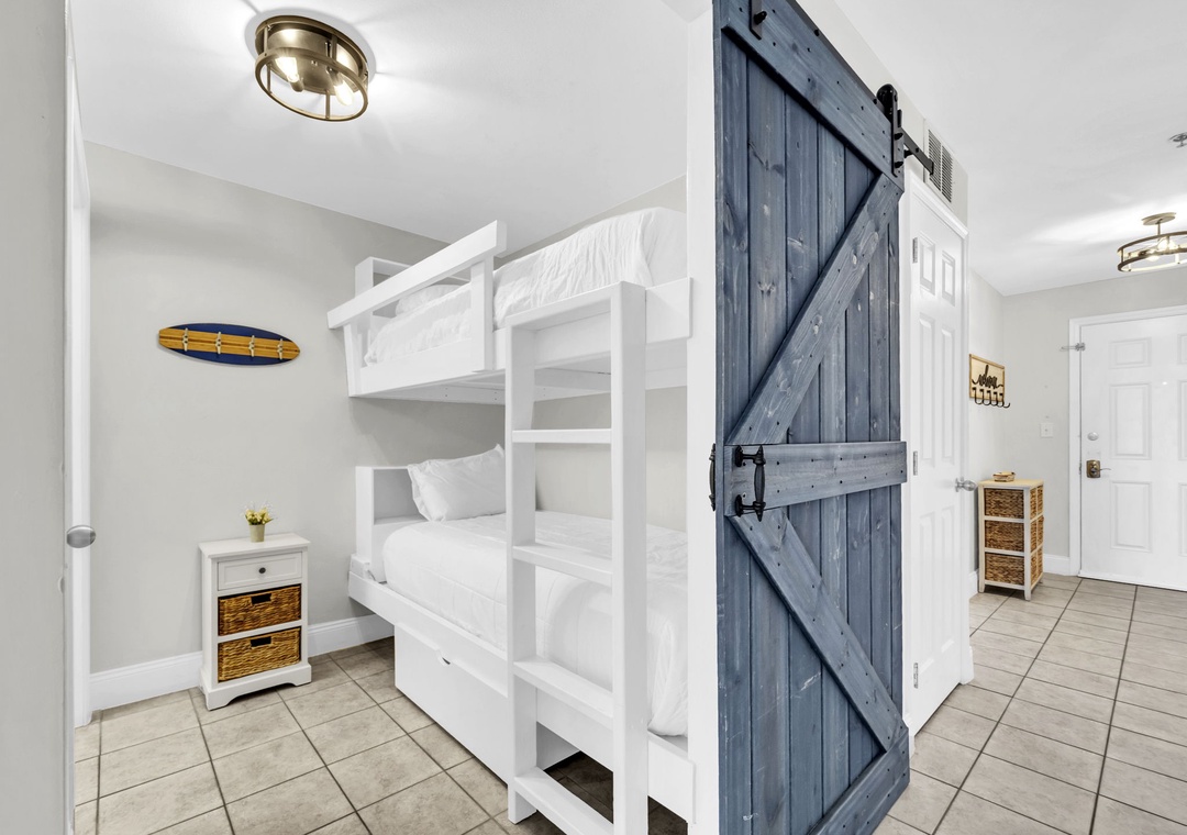 Welcome to Laketown Wharf 1213, your perfect beach getaway with breathtaking views of the Gulf of Mexico! This beautifully appointed 1BR + Bunks / 2BA condo comfortably sleeps up to 6 guests, featuring a king bed in the master suite, twin bunks in a cozy bunk room, and a queen sleeper sofa in the living area. Start your day with coffee on the spacious private balcony, taking in panoramic Gulf views. Whip up meals with ease in the fully equipped kitchen, then explore the many family-friendly amenities Laketown Wharf has to offer, including a fitness center, multiple pools, and more. Whether you're planning a family vacation or a relaxing beach retreat, Laketown Wharf 1213 offers the ideal blend of comfort, convenience, and stunning scenery. One visit and you’ll want to make it a tradition!