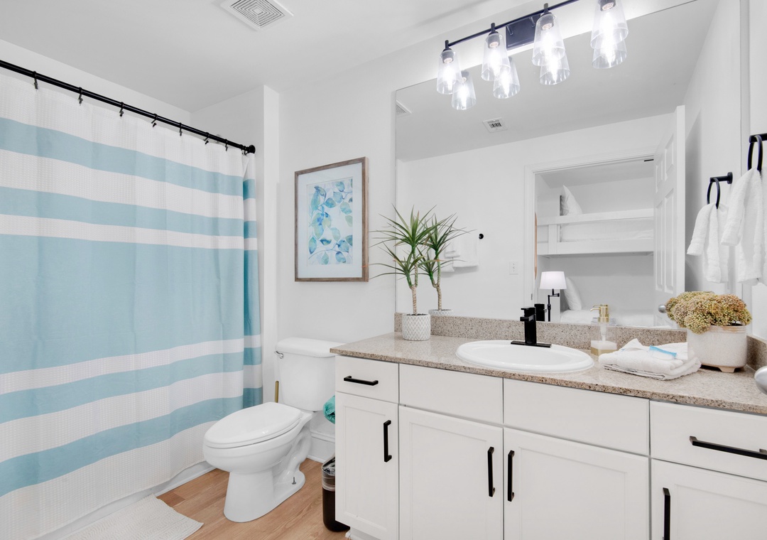 Welcome to Laketown Wharf 1714. This beautifully updated 1 bedroom 2 bath condo features spectacular gulf views from the private balcony, living room and kitchen. Unwind in the bedroom which features a king bed, ensuite, and lake views. Additional guests will love having twin bunks within an alcove with bathroom access, and a sleeper sofa in the living room, allowing up to 6 guests to sleep comfortably. The chef of the group will love the updated fully equipped kitchen featuring stainless steel appliances and granite countertops. Gather for meals around the dining table that seats 4 with additional seating at the bar for 2 to plan your next adventures. End your day snuggled up on the couch with your favorite movie on the large flat screen tv or on the balcony with your favorite libation. Come see why Laketown Wharf 1714 will be your family’s favorite rental for years to come.