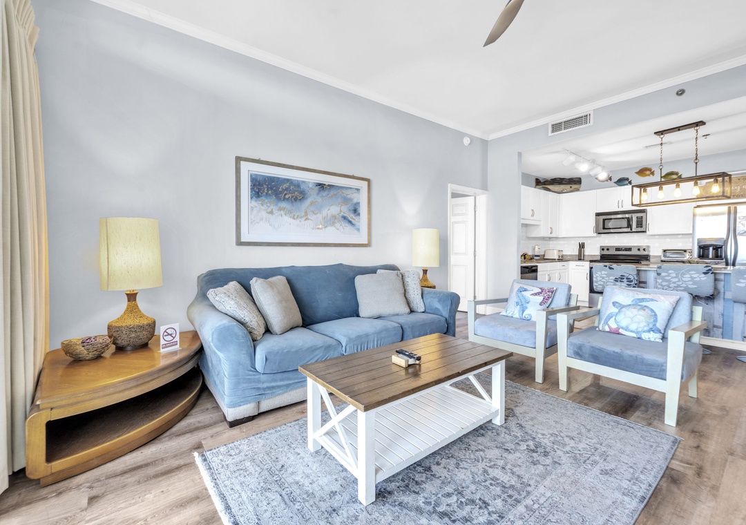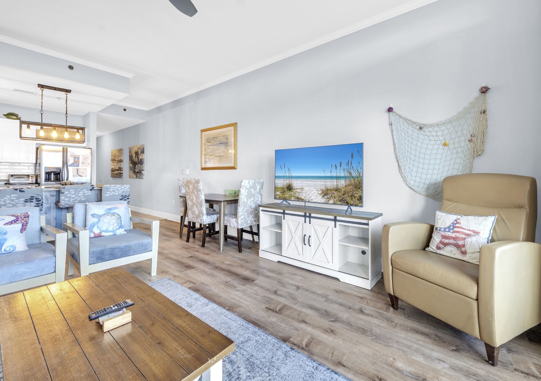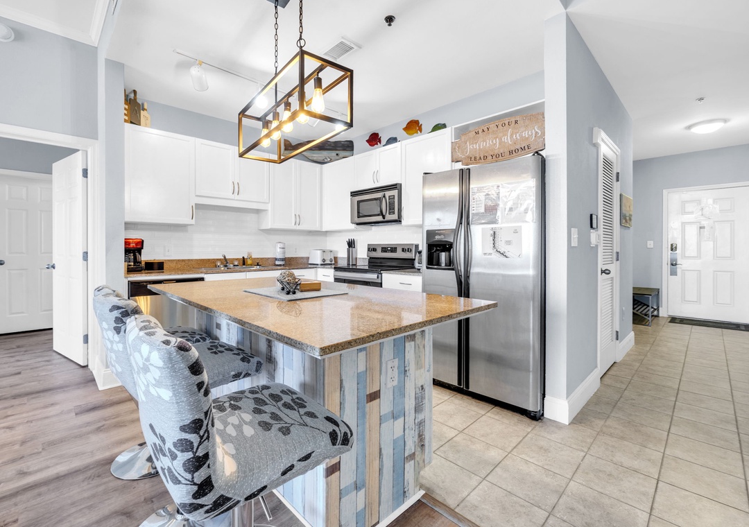 Welcome to LakeTown Wharf 2031! This spacious 2BR + bunks, 2BA condo sleeps six comfortably, featuring a king bed in the master suite, a queen bed in the guest room, and twin hallway bunks perfect for kids or extra guests. Step onto the spacious balcony, just moments from the sugary white sands of the world’s most beautiful beaches. The fully stocked kitchen has everything you need to prepare your favorite meals, and the location can’t be beat. You’ll be within easy walking distance of several dining options, including the iconic beachside bar and pier at Pineapple Willy’s (hours and seasonal operations may vary). Walmart and a variety of nearby attractions make this spot ideal for guests of all ages. Simply Park, unpack, and relax—your perfect beach getaway begins at LakeTown Wharf 2031.