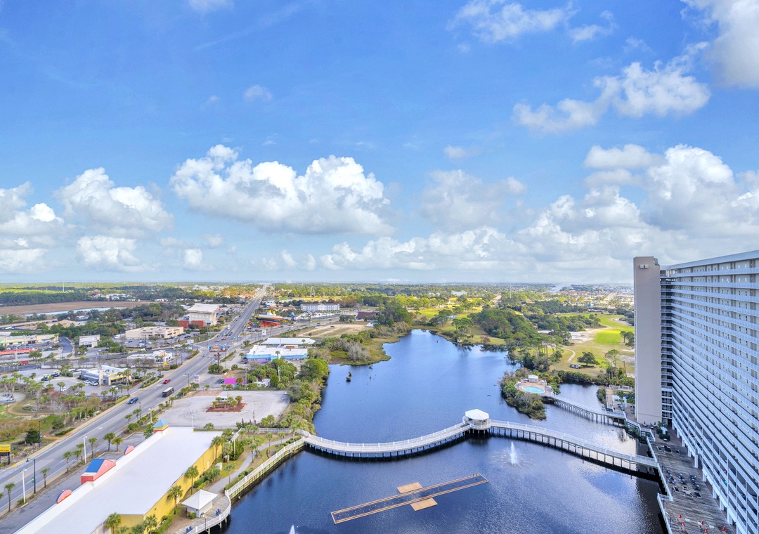 Laketown Wharf guests experience some of the best amenities at the beach, including 5 different and unique pools to choose from, like a kids’ pool, teen pool, kiddie water area, and an adult pool! There is also 24-hour security, private beach access, fitness center, putting green, outdoor gazebos, lake and beach views, a boardwalk, restaurants, spa tub, and a spectacular fountain water show choreographed to music! For a bite to eat, enjoy Laketown Market, the perfect place to stop in for snacks and drinks, Paradise Pizza is available inside Laketown Market and can prepare all your favorite pizzas, Sunshine Bar and Grill has a full menu of delicious dining options for all ages, and Splash Bar is the ideal spot for relaxing by the pool with a drink in your hand! You can also have some fun at Shipwreck Island Waterpark, about 2 miles away.