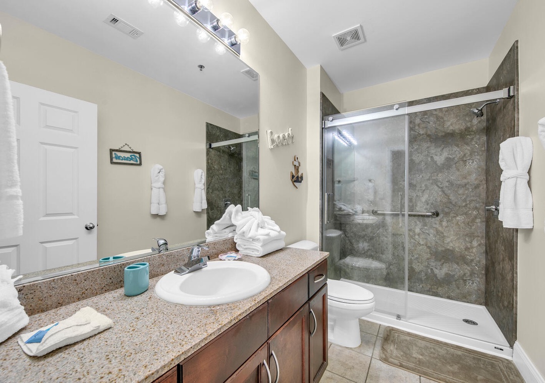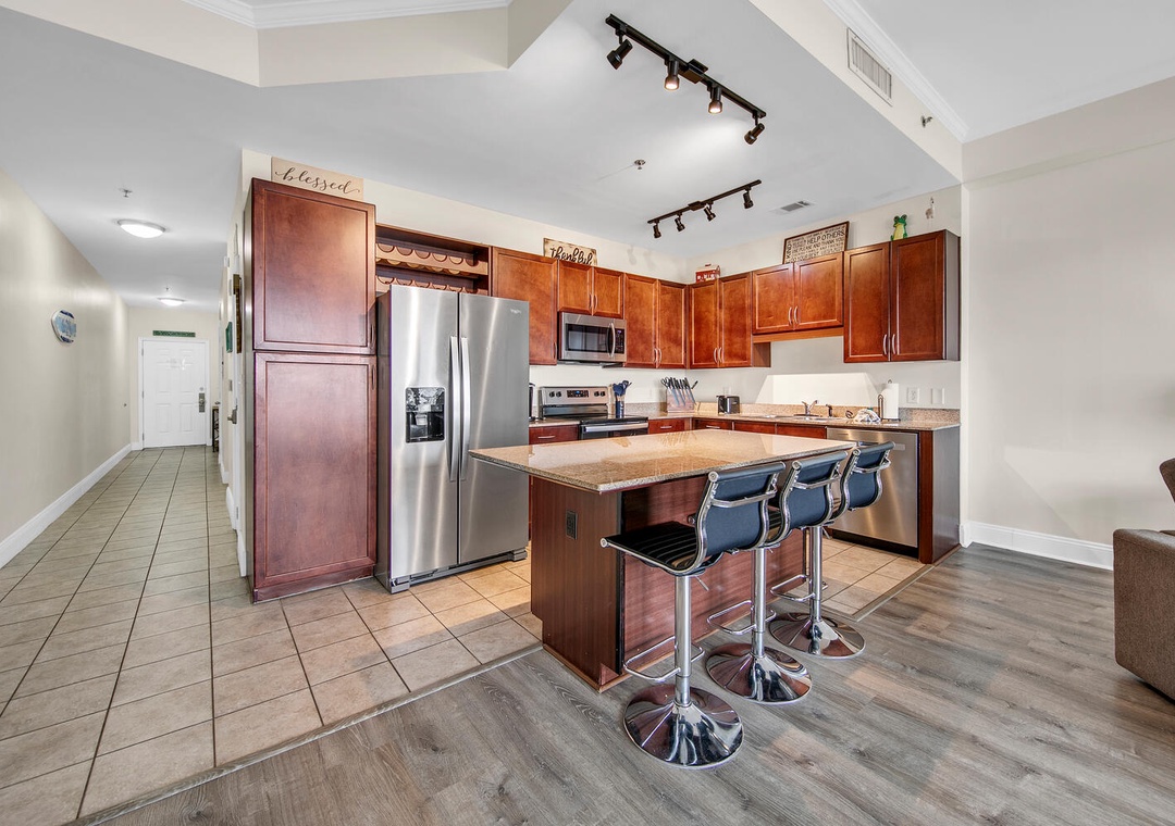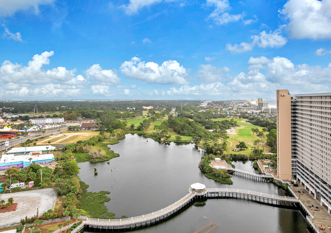 Laketown Wharf guests experience some of the best amenities at the beach, including 5 different and unique pools to choose from like a kid’s pool, teen pool, kiddie water area, and an adult pool! There is also 24-hour security, private beach access, a fitness center, a putting green, outdoor gazebos, lake, and beach views, a boardwalk, restaurants, a spa tub, and a spectacular fountain water show choreographed to music! For a bite to eat, enjoy Laketown Market, the perfect place to stop in for snacks and drinks, Paradise Pizza is available inside Laketown Market and can prepare all your favorite pizzas, Sunshine Bar and Grill has a full menu of delicious dining options for all ages, and Splash Bar is the ideal spot for relaxing by the pool with a drink in your hand! You can also have some fun at Shipwreck Island Waterpark about 2 miles away.
