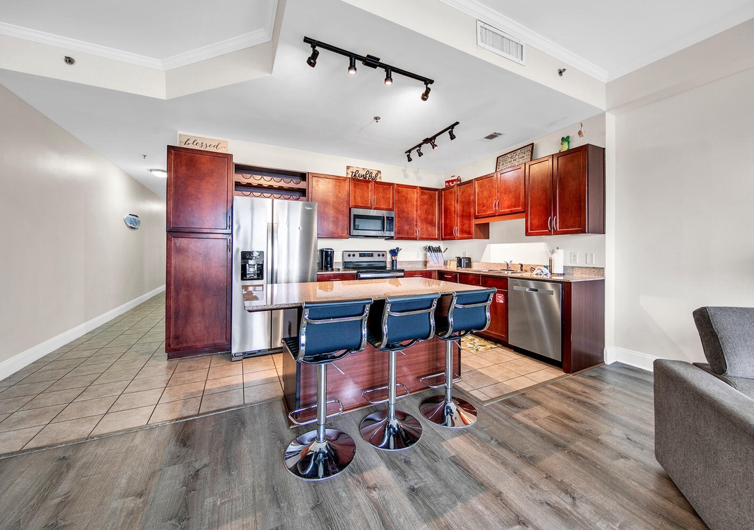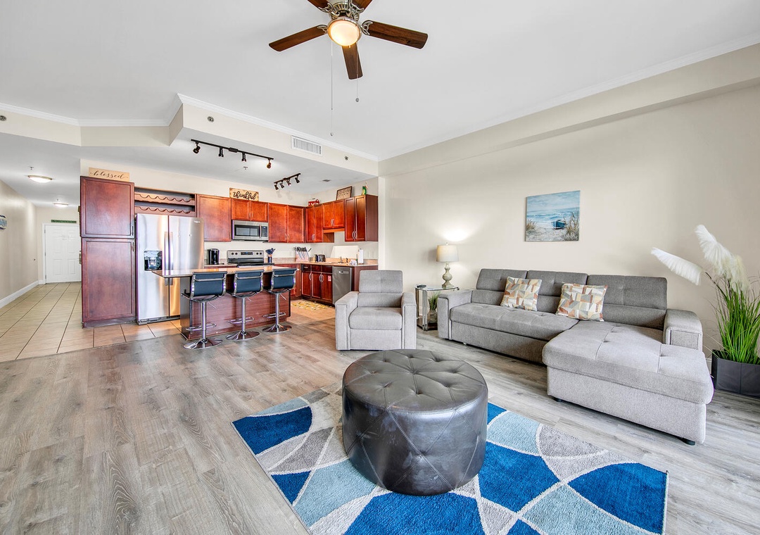 Welcome to your getaway at Laketown Wharf 2135! This freshly redecorated 1-bedroom, 2-bathroom condo with bunkbed built-in is at one of Panama City Beach’s hottest resorts. Take in the amazing views of the namesake lake from the balcony of this 21st-floor condo while you sip your morning coffee. Enjoy the morning breeze on the furnished balcony and capture the mesmerizing views of the lake and a peek-a-boo view of the Gulf of Mexico. Treat the family to a homestyle breakfast in the fully equipped kitchen with a full suite of stainless-steel appliances. The balcony features an outdoor dining table with seating for four. You will find a king master bedroom, twin bunk beds in the hall, and a queen sleeper sofa in the living room making this condo sleep 6 comfortably.