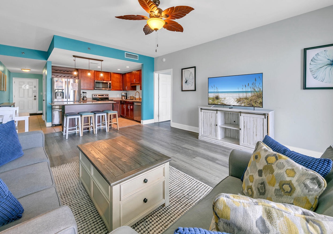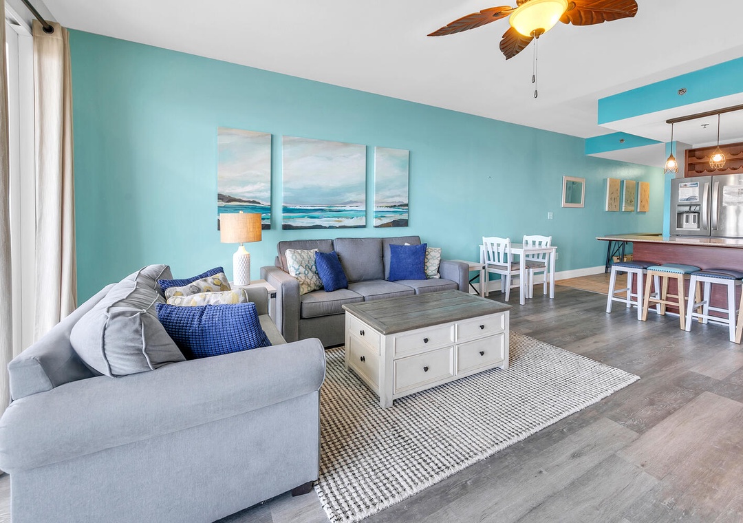 Welcome to your tropical escape at Laketown Wharf 607 in the heart of Panama City Beach! Experience the ultimate beachside retreat at this stunning 2BR+Bunk/2BA condo. Embrace the soothing vibes of beach life as you slumber on a king bed in the master bedroom, a queen in the guest bedroom, and twin over twin bunk bed in the hall alcove, accommodating up to 6 guests with ease. Greet the dawn with the warm embrace of the sunrise as you savor a cup of coffee on your own private balcony. Unwind and chill in the expansive living room, where a flat-screen TV invites you to enjoy your favorite flicks. Laketown Wharf 607 offers a slice of paradise for your whole family, ensuring unforgettable moments that will beckon you back year after year!