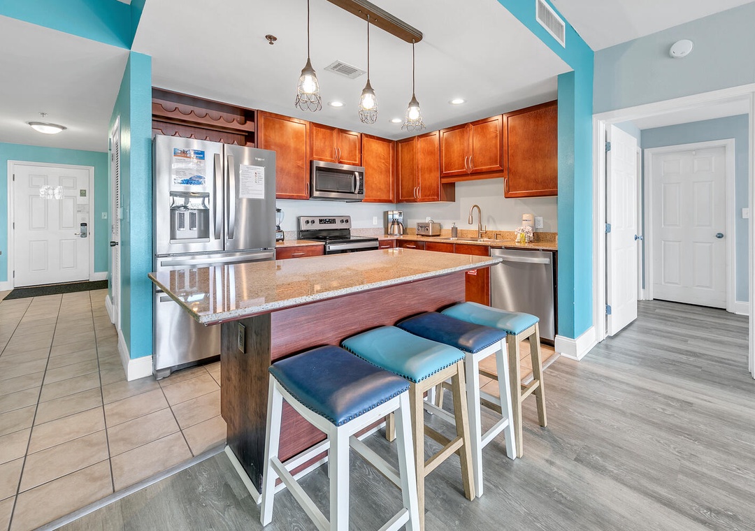 Laketown Wharf guests experience some of the best amenities at the beach, including 5 different and unique pools to choose from like a kid’s pool, teen pool, kiddie water area, and an adult pool! There is also 24-hour security, private beach access, a fitness center, a putting green, outdoor gazebos, lake, and beach views, a boardwalk, restaurants, a spa tub, and a spectacular fountain water show choreographed to music! For a bite to eat, enjoy Laketown Market, the perfect place to stop in for snacks and drinks, Paradise Pizza is available inside Laketown Market and can prepare all your favorite pizzas, Sunshine Bar and Grill has a full menu of delicious dining options for all ages, and Splash Bar is the ideal spot for relaxing by the pool with a drink in your hand! You can also have some fun at Shipwreck Island Waterpark about 2 miles away.