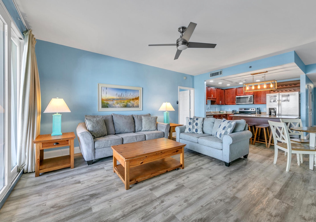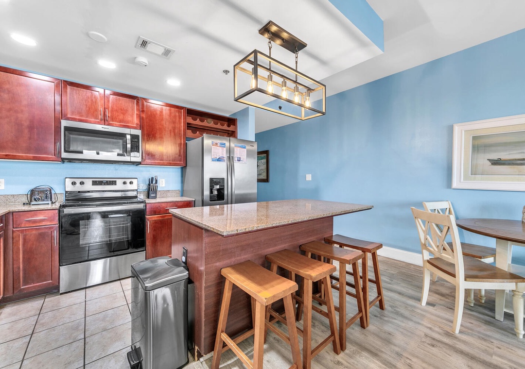 Laketown Wharf guests experience some of the best amenities at the beach, including 5 different and unique pools to choose from like a kid’s pool, teen pool, kiddie water area, and an adult pool! There is also 24-hour security, private beach access, a fitness center, a putting green, outdoor gazebos, lake, and beach views, a boardwalk, restaurants, a spa tub, and a spectacular fountain water show choreographed to music! For a bite to eat, enjoy Laketown Market, the perfect place to stop in for snacks and drinks, Paradise Pizza is available inside Laketown Market and can prepare all your favorite pizzas, Sunshine Bar and Grill has a full menu of delicious dining options for all ages, and Splash Bar is the ideal spot for relaxing by the pool with a drink in your hand! You can also have some fun at Shipwreck Island Waterpark, about 2 miles away.