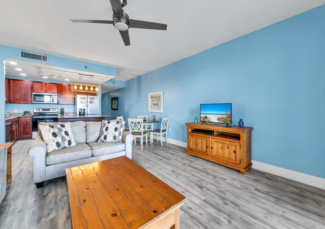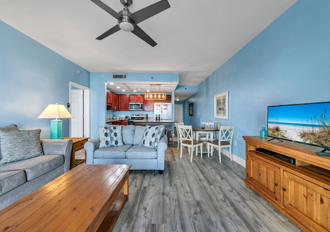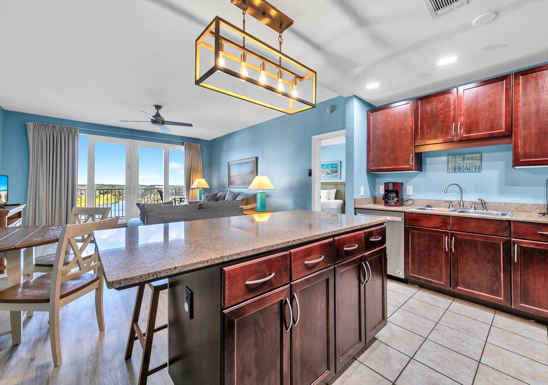 If you're looking for a family-friendly place to call your next home away from home, look no further than Laketown Wharf 731! Experience the ultimate retreat at this stunning 2BR+Bunk/2BA condo that overlooks the lake. Sleeping accommodations include a king bed in the master bedroom, a king in the guest bedroom, a twin-over-twin bunk bed in the hall alcove, and a queen sleeper sofa in the living room, easily accommodating up to 8 guests. Greet the dawn with the warm embrace of the sunrise as you savor a cup of coffee on your private balcony. Unwind and chill in the expansive living room, where a flat-screen TV invites you to enjoy your favorite flicks. Come see why the fun never stops at Laketown Wharf 731!